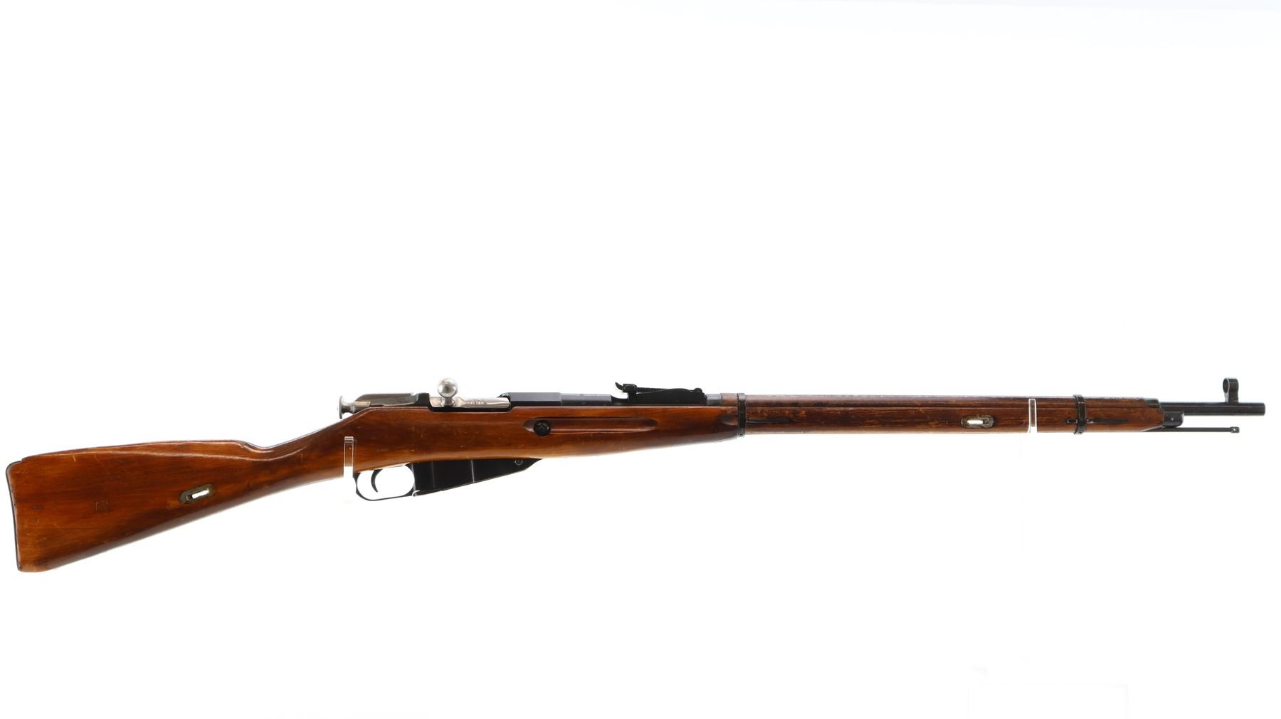 Main Description: Manufactured by Izhevsk 1930, arsenal refurbished numbered to match. Post front sight with hood and ramp, adjustable u notched rear sight, blued finish, hex receiver, silver bolt with straight handle. Two piece full military wood stocks, finger grooved forearm, straight grip, smooth steel butt plate, sling slots, cleaning rod.