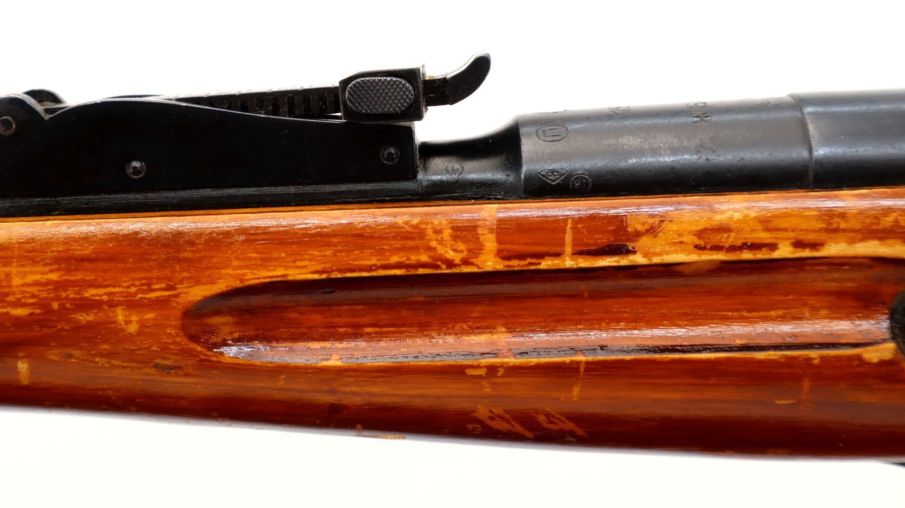 Main Description: Manufactured by Izhevsk 1938, arsenal rebuilt numbered to match. Post front sight with hood and ramp, adjustable u notched rear sight, blued finish, round receiver, silver bolt with straight handle. Two piece full military wood stocks, finger grooved forearm, straight grip, smooth steel butt plate, sling slots, cleaning rod.