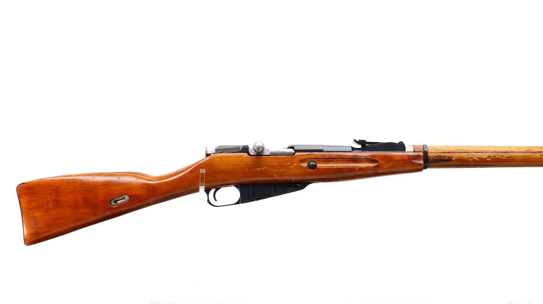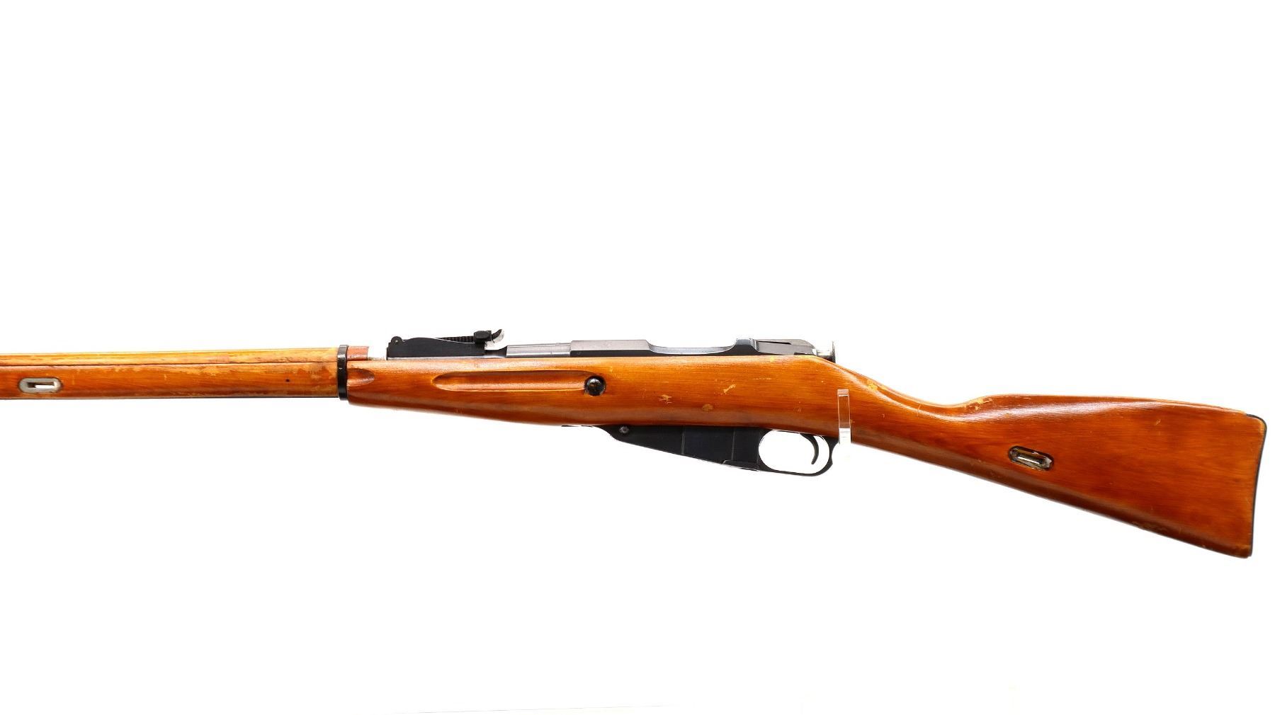 Main Description: Manufactured by Tula 1933, visible numbers match. This rifle has the early front sight uses a Panshin bayonet with integral sight hood. Blade front sight with ramp, adjustable u notched rear sight, blued finish, hex receiver, silver bolt with straight handle. Two piece full military wood stocks, finger grooved forearm, straight grip, smooth steel butt plate, sling slots, cleaning rod. Panshin Bayonet is available in Military Session 4 Lot # 25095