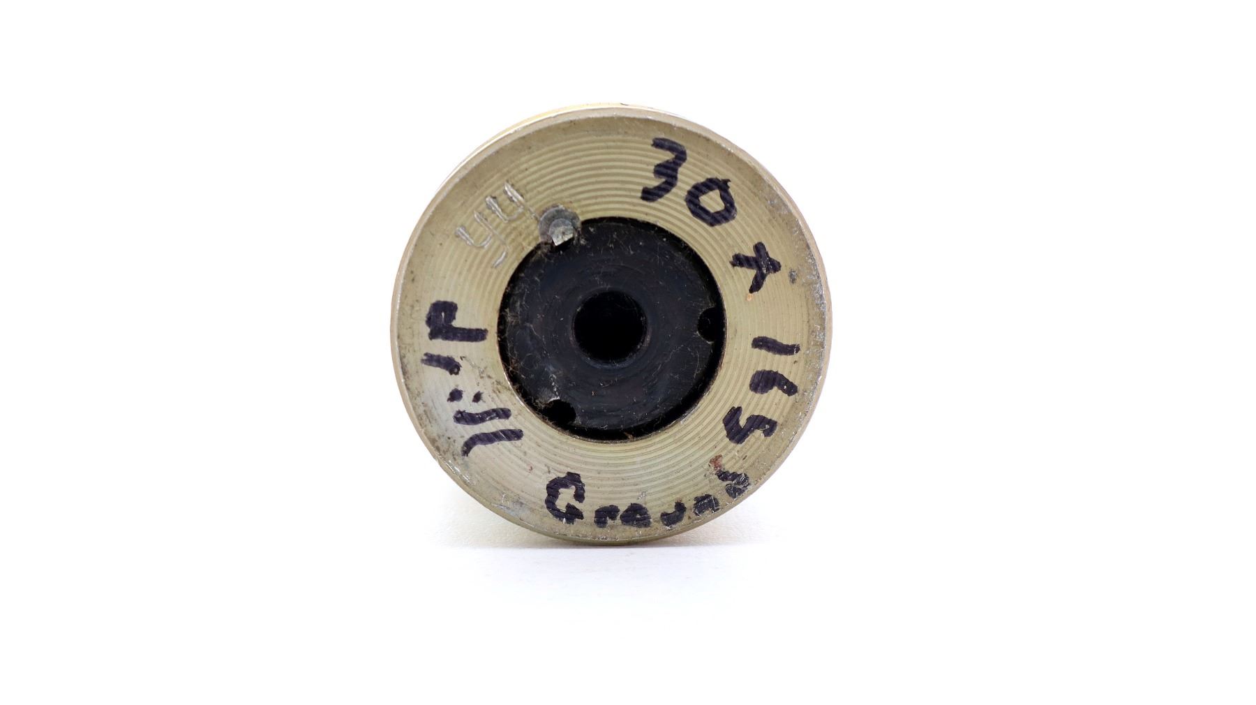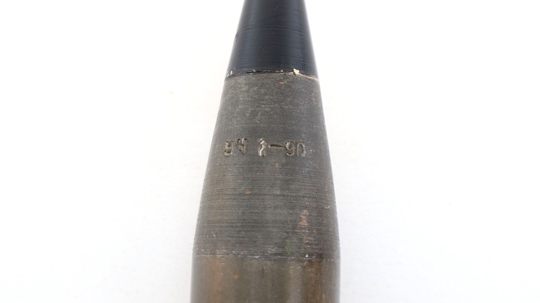 (1) STEEL CASING, STEEL PROJECTILE, COPPER BAND, FIRED PRIMER, PROJECTILE MARKED: "Y4", PROOF MARK, "-90", NO VISIBLE MARKINGS ON COPPER BAND, VARIOUS INK STAMP MARKINGS ON STEEL CASING BODY, BOTTOM MARKED: "Y4" & HAND WRITTEN: "30 X 165 DRILL GROUND", NO VISIBLE MARKINGS ON PRIMER, APPROX. 1.5" DIA. & OAL APPROX. 11.25". SEE PHOTOS.