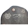 (1) BROWN PEBBLED LEATHER HOLSTER WITH MAG SLEEVE, TWO LEATHER BELT LOOPS, BRASS FITTINGS & VARIOUS INK STAMP MARKINGS. SEE PHOTOS.