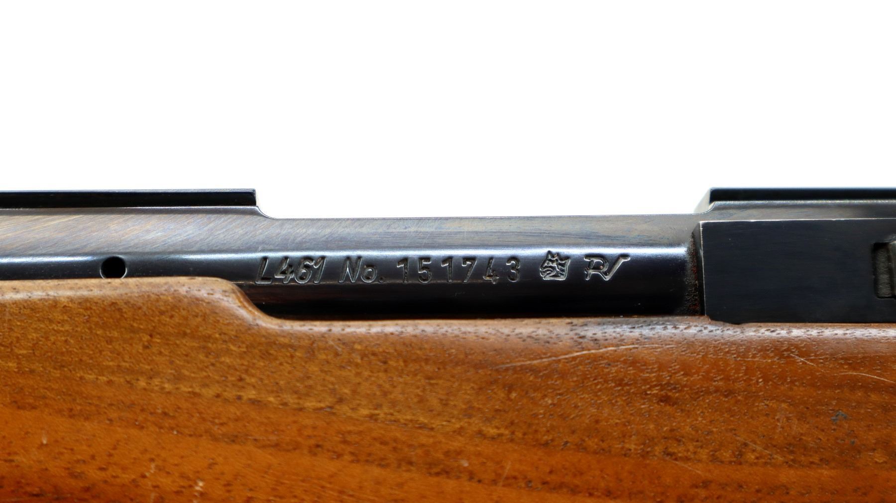 Main Description: No sights, matte stainless Pac Nor barrel, Consignor states never fired. Blued receiver with integral scope bases and checkered knob. One piece wood stock, rosewood forend and pistol grip caps, checkered forearm and pistol grip, cheek rest, brown vented rubber recoil pad, 14" LOP, engraved hinged floor plate and trigger guard, swivel studs.