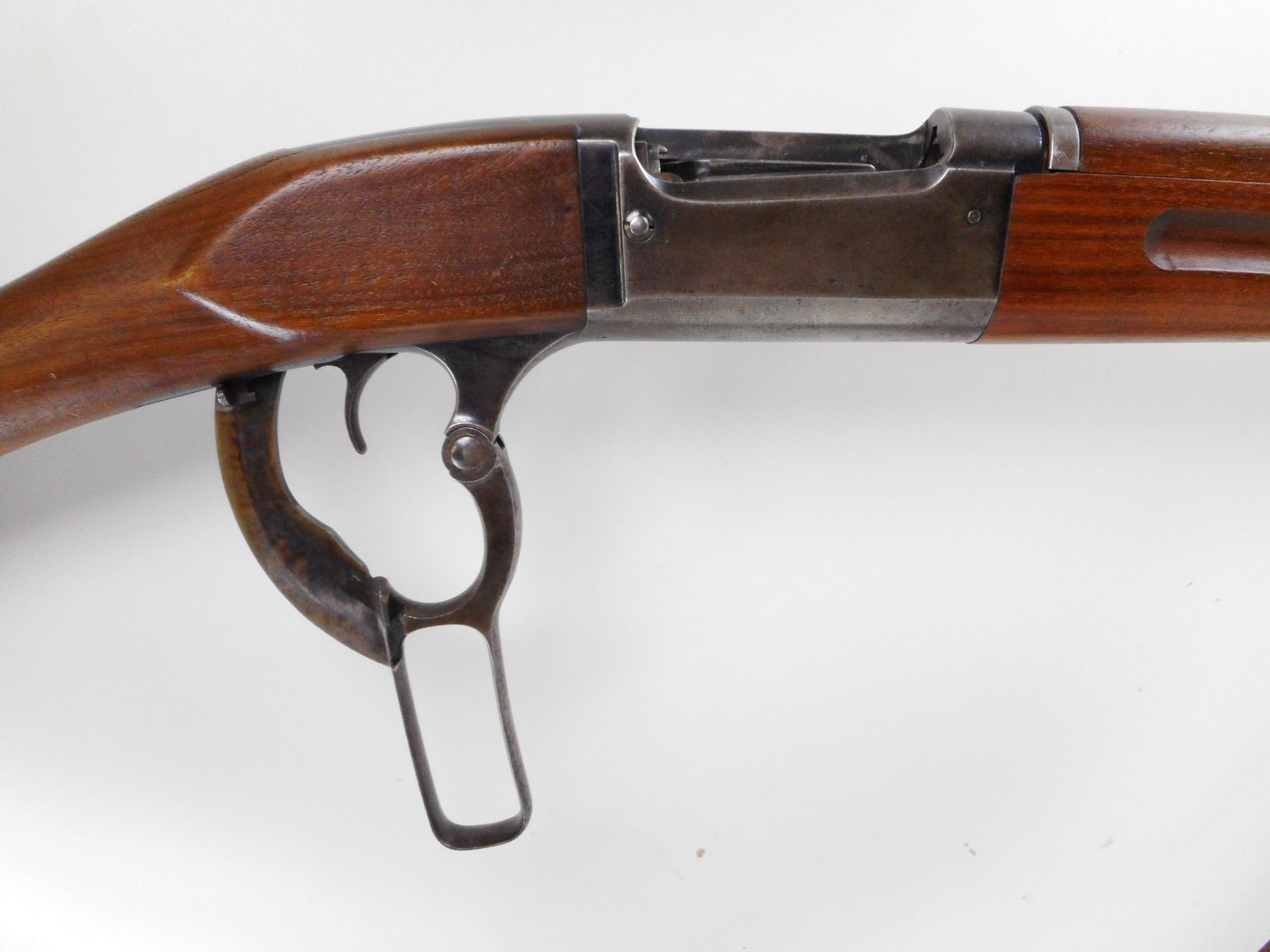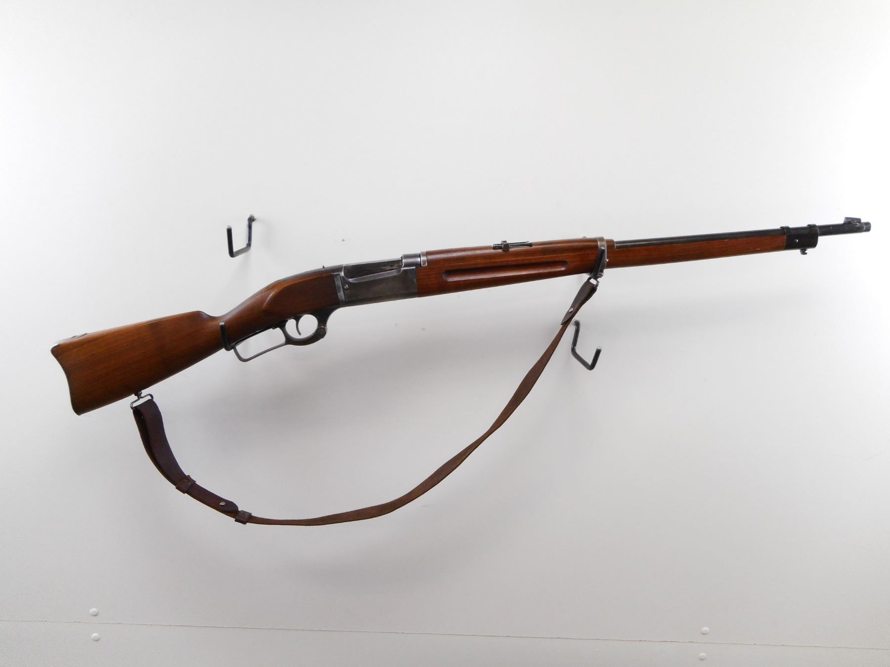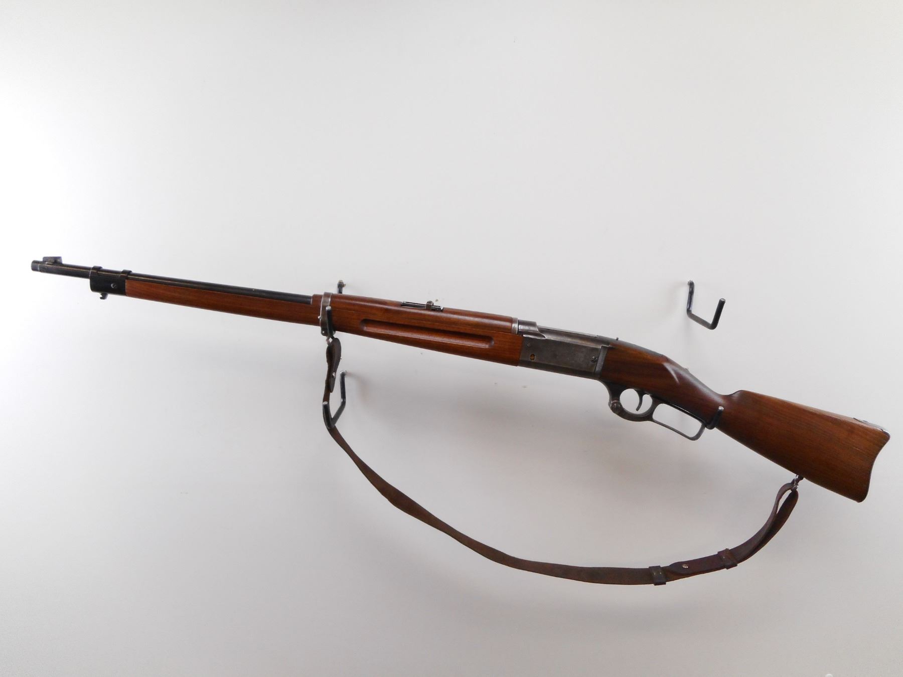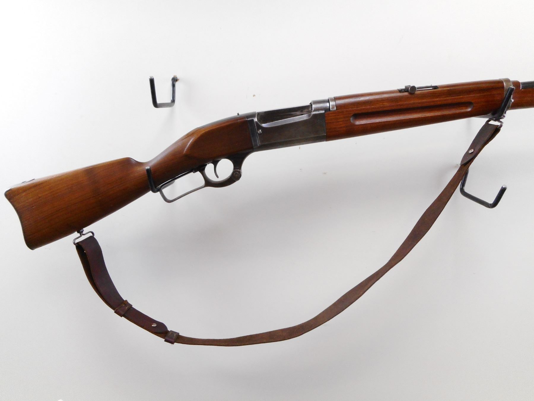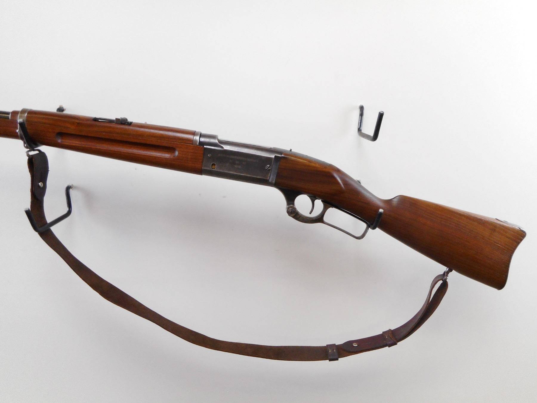 SAVAGE , MODEL:99D MUSKET , CALIBER: 303 SAV , BORE IS GOOD BUT WORN WITH LIGHT PITTING. BLADE FRONT SIGHT. U NOTCH ADJUSTABLE REAR LADDER SIGHT. BLUED FINISH ON METAL PARTS. RECEIVER HAS COCKING INDICATOR. DRILLED AND TAPPED FOR PEEP SIGHT. LEFT SIDE OF RECEIVER ENGRAVED GEO.A. DESLONGCHAMDS UNDERNEATH IS M.H.G. 1950 ( MONTREAL HOMEGUARD). 3 PIECE FULL MILITARY SMOOTH WOOD STOCKS. STRAIGHT GRIP. SMOOTH STEEL BUTT PLATE # 214. SWIVELS WITH COMMERCIAL SLING. FRONT BAND WITH BAYONET LUG. BLUEING SHOWS SOME WEAR AND HANDLING MARKS. STOCK SHOWS SOME HANDLING MARKS. , SERIAL # 165359 , ACTION: LEVER ACTION RIFLE , BARREL LENGTH: 26" , CONDITION: 7/10 , CLASS: CANADIAN NON RESTRICTED CLASS. CONSIGNOR STATES, "There were only estimated 2500 of these Savage muskets produced, and approx 850 were purchased for the Montreal Home Guard by the members. All of these were engraved with an issue number and many had the owner’s name engraved. This rifle is in very good condition, with a small crack at the top of the stock behind the receiver. With original sling. It is engraved with rack number 213 on top butt plate tang, and GEO A DESLONGCHAMPS MGH 1915 on right receiver wall. There is a December 1916 CEF enlistment record for a George Deslongchamps born in February 1989 in Quebec, listing 16 months prior military service in Quebec. A piece for the Savage 99 or Canadian military collector."