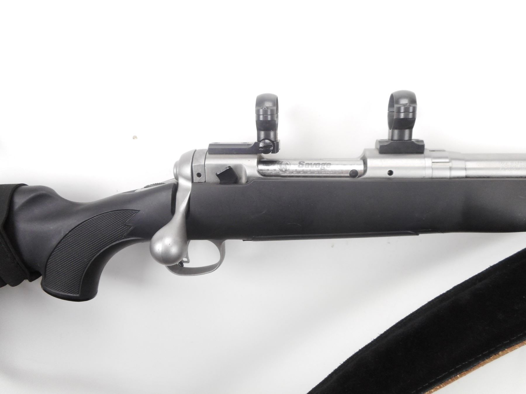 SAVAGE , MODEL: 12 , CALIBER: 22-250 REM , INTERNAL BOX MAGAZINE. BORE IS VERY GOOD. NO SIGHTS. DRILLED AND TAPPED WITH SCOPE MOUNTS. ONE PIECE CHECKERED BLACK SYNTHETIC STOCK WITH RUBBER RECOIL PAD AND NYLON CARTRIDGE SLEEVE. JEWELLED BOLT. SLING SWIVEL LOOPS WITH LEATHER SLING. SHOWS VERY LITTLE HANDLING MARKS. , ACTION: BOLT ACTION RIFLE , BARREL LENGTH: 26" , CONDITION: 8/10 , SERIAL # G939028 , CLASS: CANADIAN NON RESTRICTED CLASS
