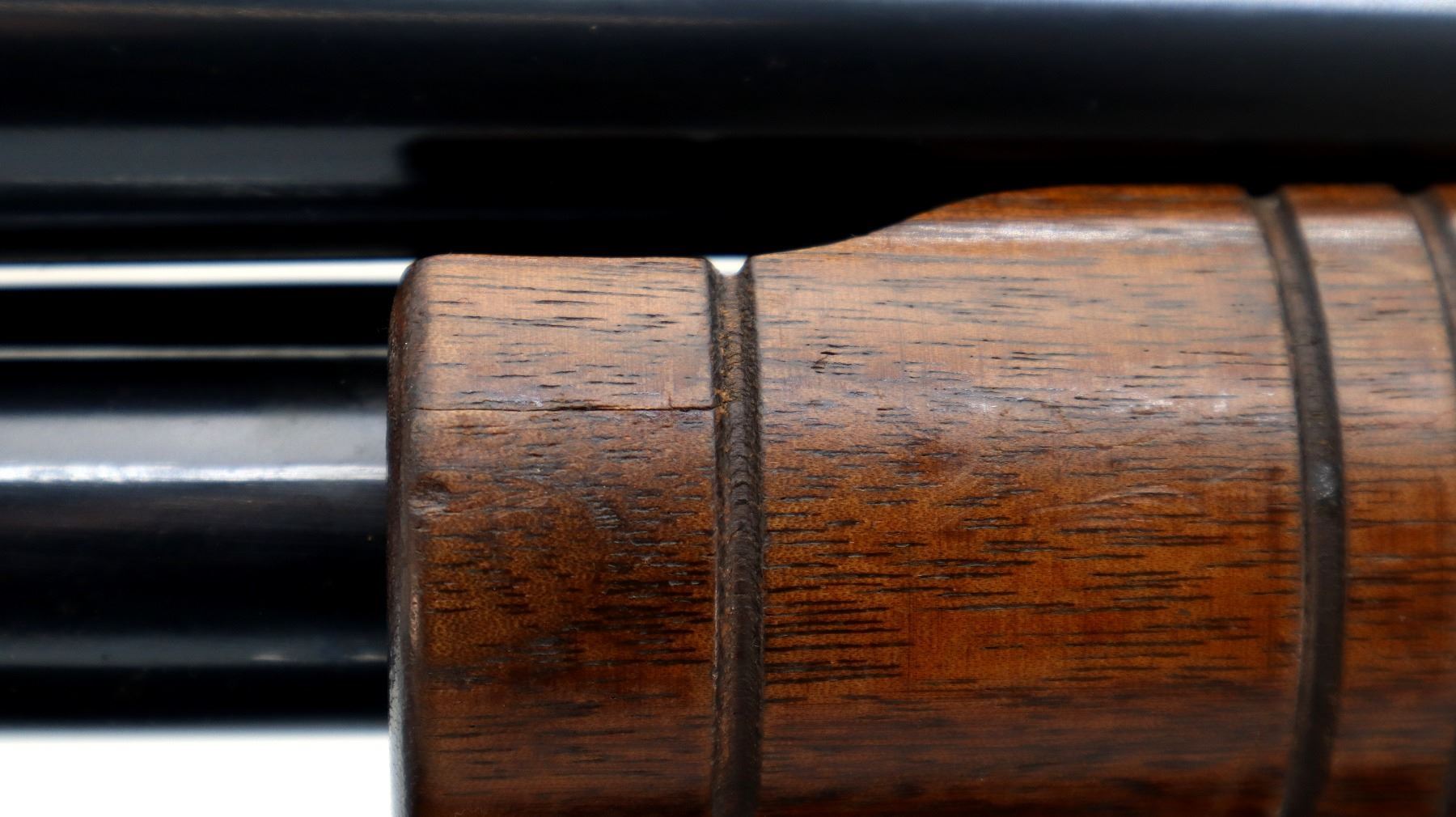 Main Description: Silver front and mid rib beads, metal has been polished and reblued, vent rib, left hand ejection port with jewelled bolt, engraved receiver. Two piece wood stocks, grooved forearm and pistol grip, grooved black polymer butt plate.
