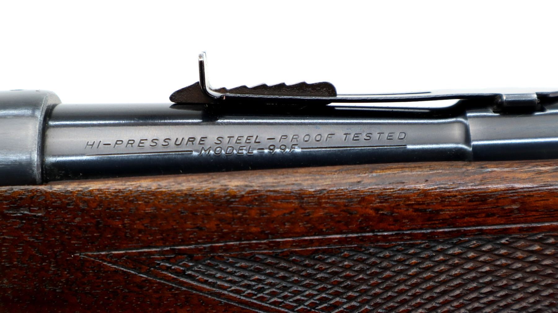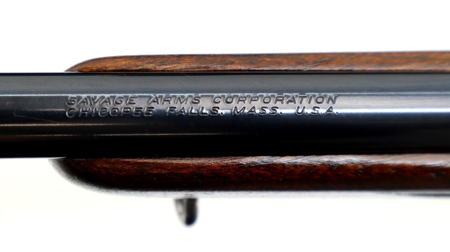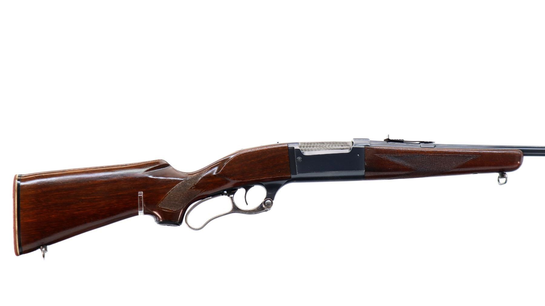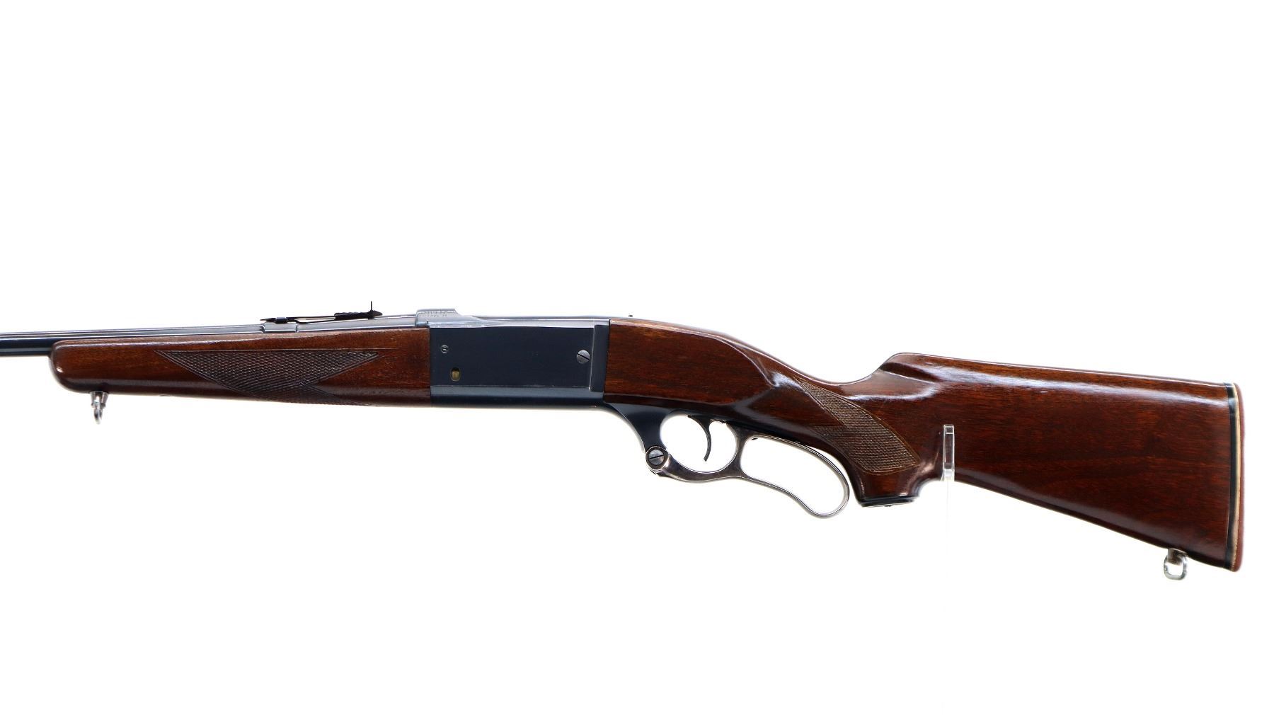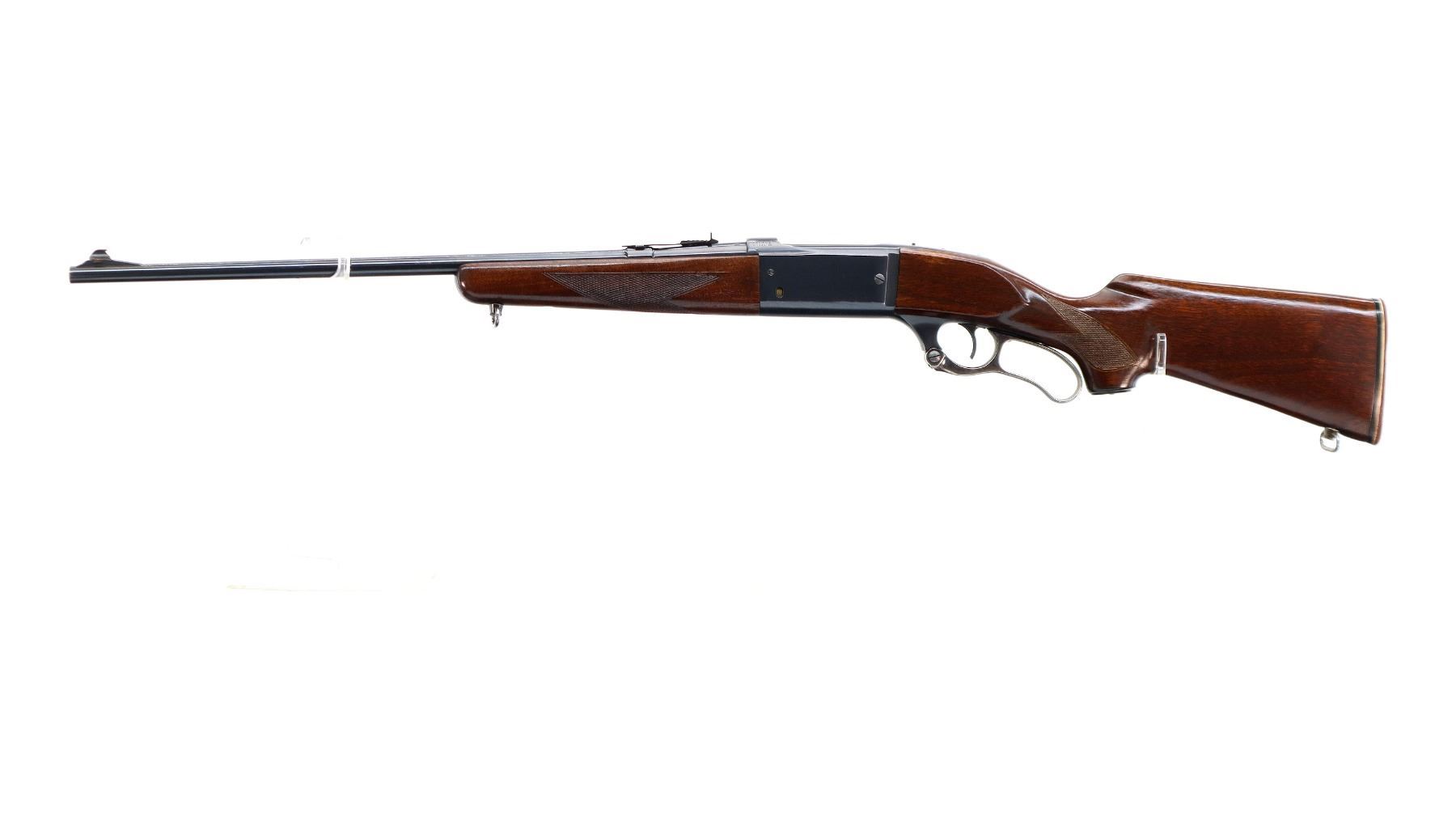 Main Description: Blade front sight with ramp, adjustable u notched rear sight, polish blued finish, receiver drilled and tapped with plug screws installed, jewelled bolt, cocking indicator, colour case hardened lever. Two piece wood stocks, checkered forearm and pistol grip, red rubber recoil pad which is damaged, 13.5" LOP, grip cap, sling swivels.