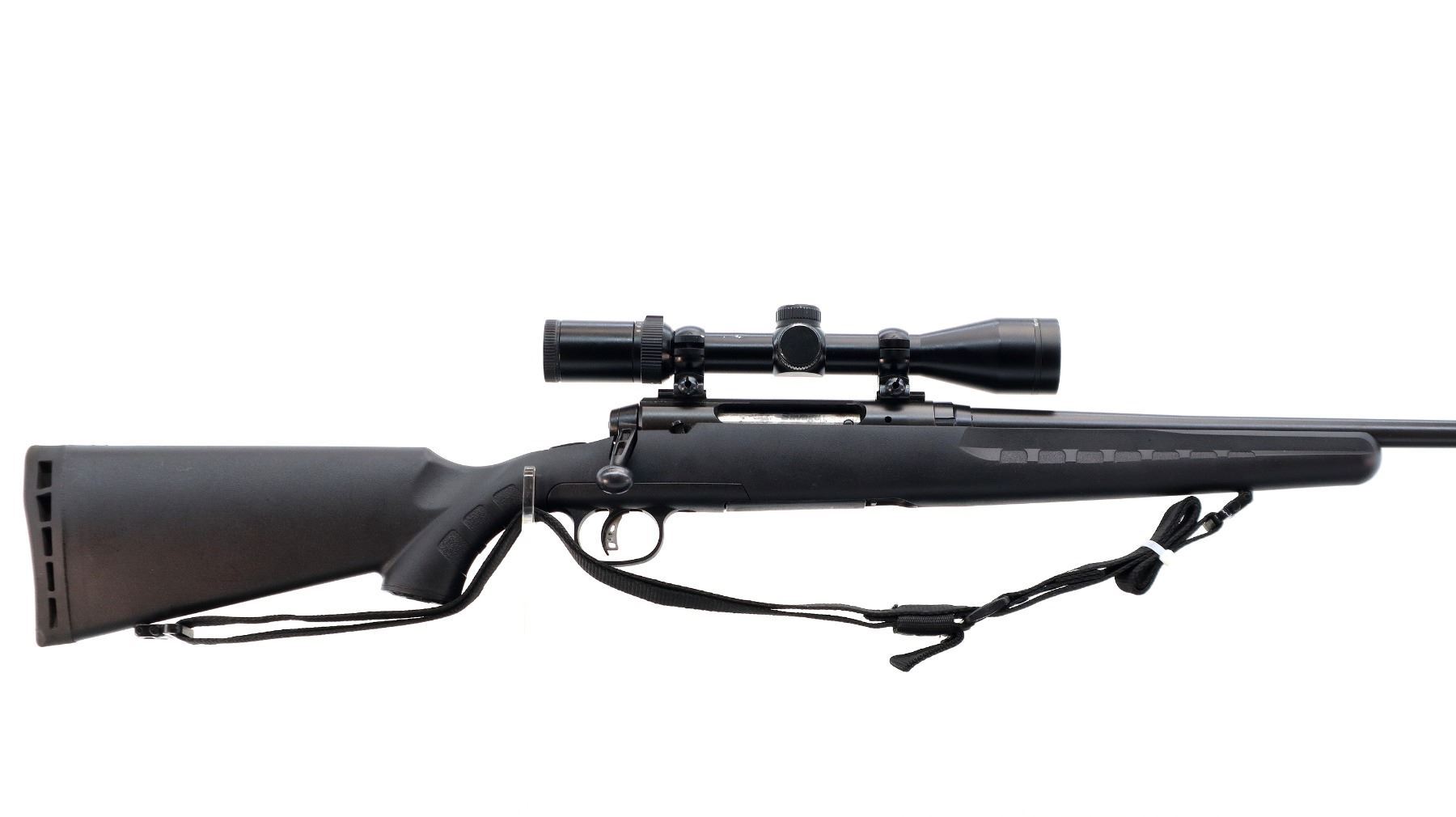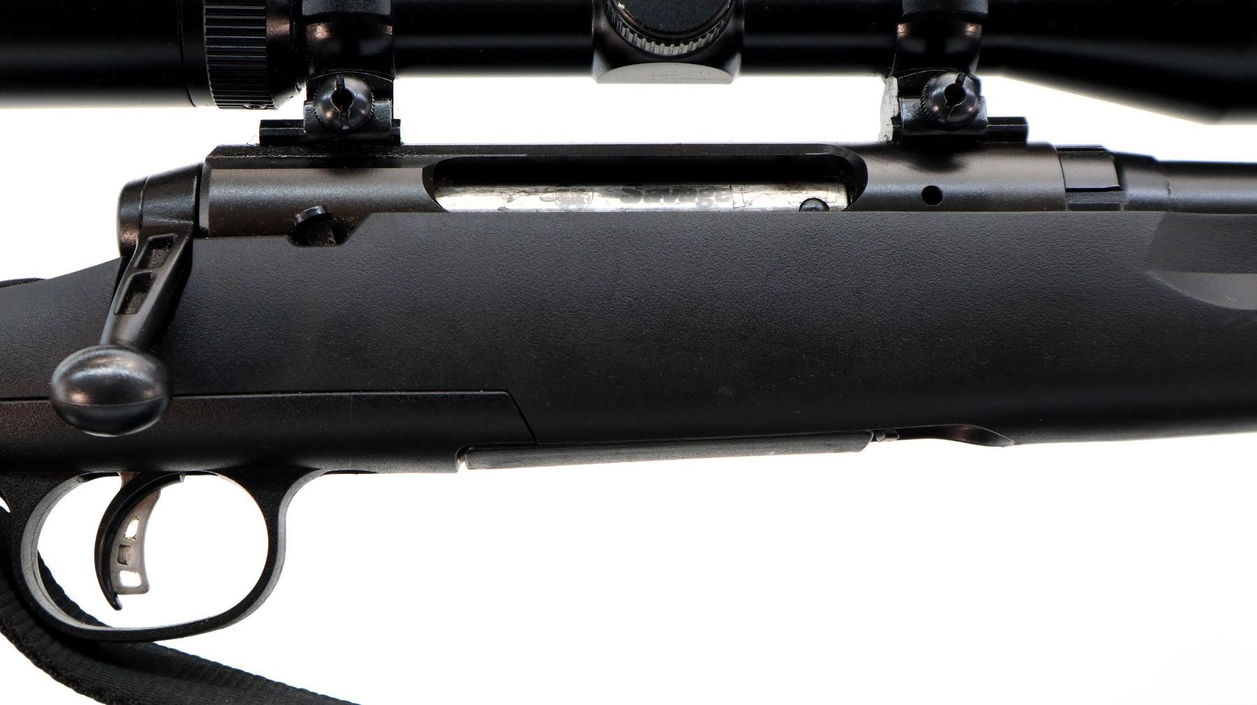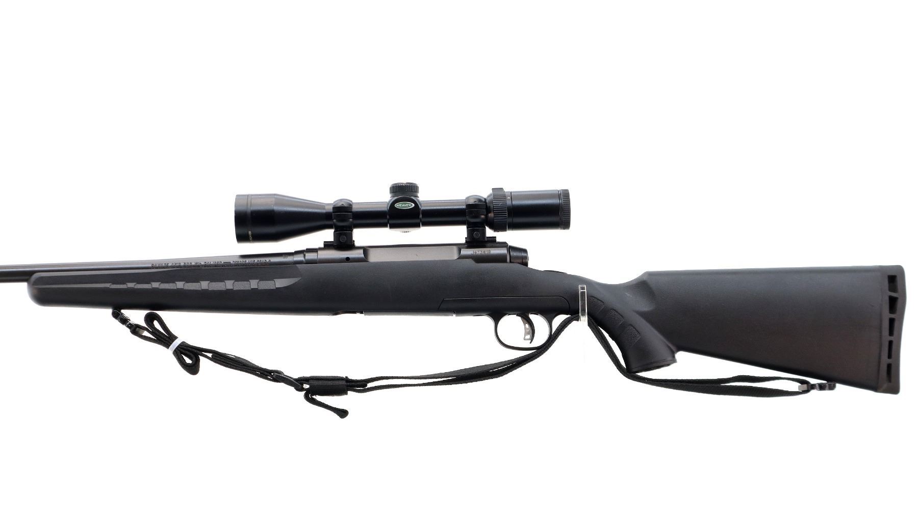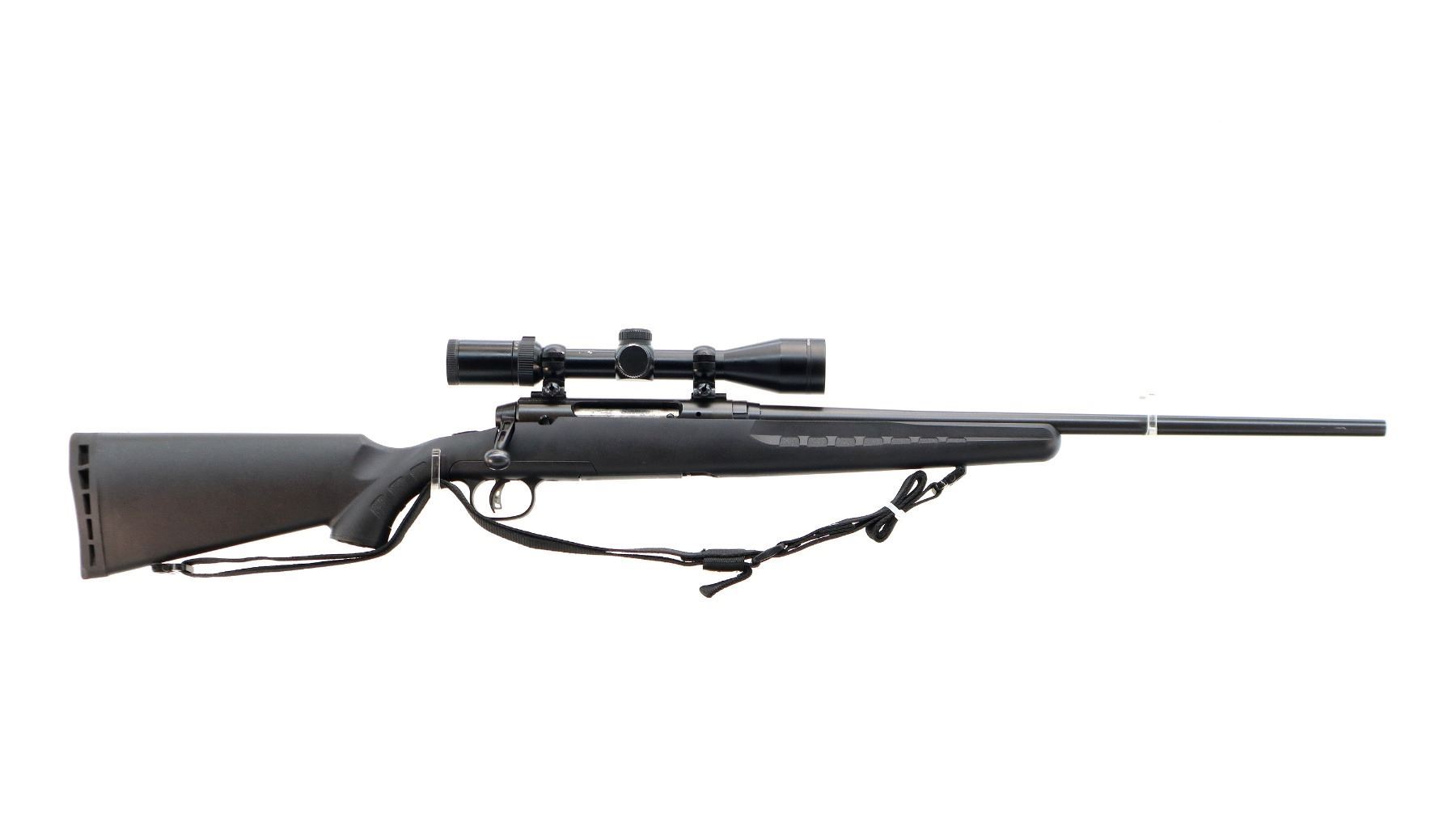 Main Description: No sights, Parkerized metal finish, receiver drilled and tapped with Weaver 3-9x40 scope installed, clear optics with BDC reticle. Smooth bolt knob, tang safety. One piece black synthetic stock, textured forearm and pistol grip panels, black vented rubber recoil pad, grip cap, accu trigger, sling swivels with black nylon sling.