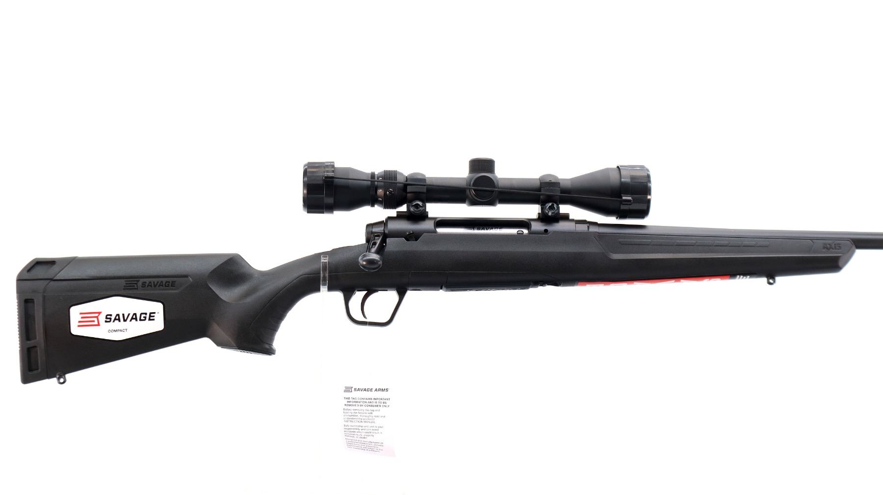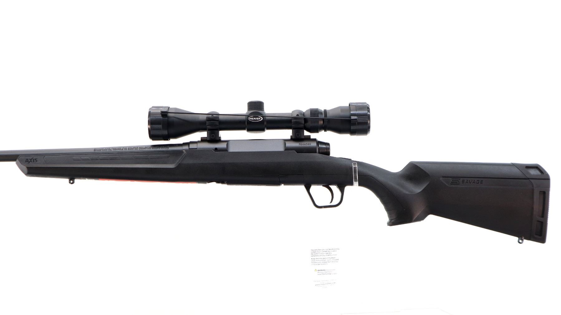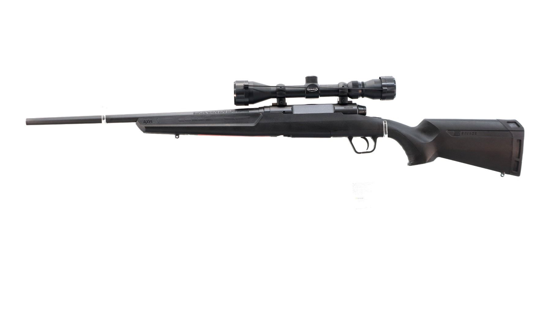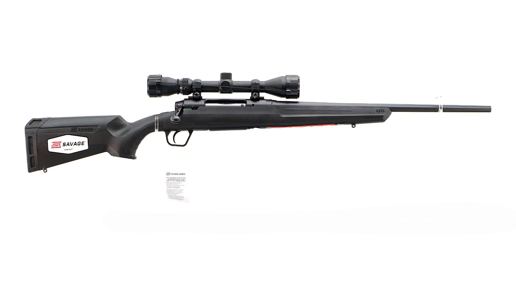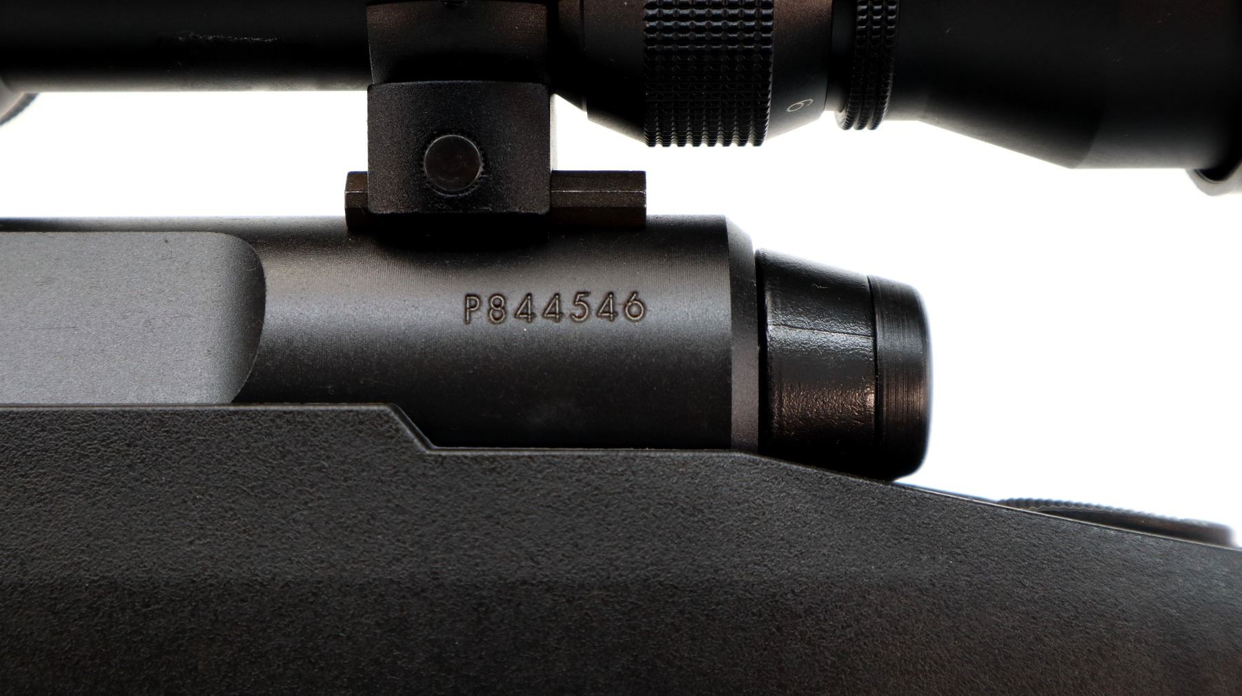 Main Description: May have been test fired in factory. No sights, Parkerized metal finish, round barrel, receiver drilled and tapped with Weaver 3-9x40 scope installed, clear optics with duplex crosshair. Tang safety. One piece black synthetic stock, grooved forearm and pistol grip panels, black rubber recoil pad, 12.5" LOP, grip cap, non accu trigger, retains factory stickers.