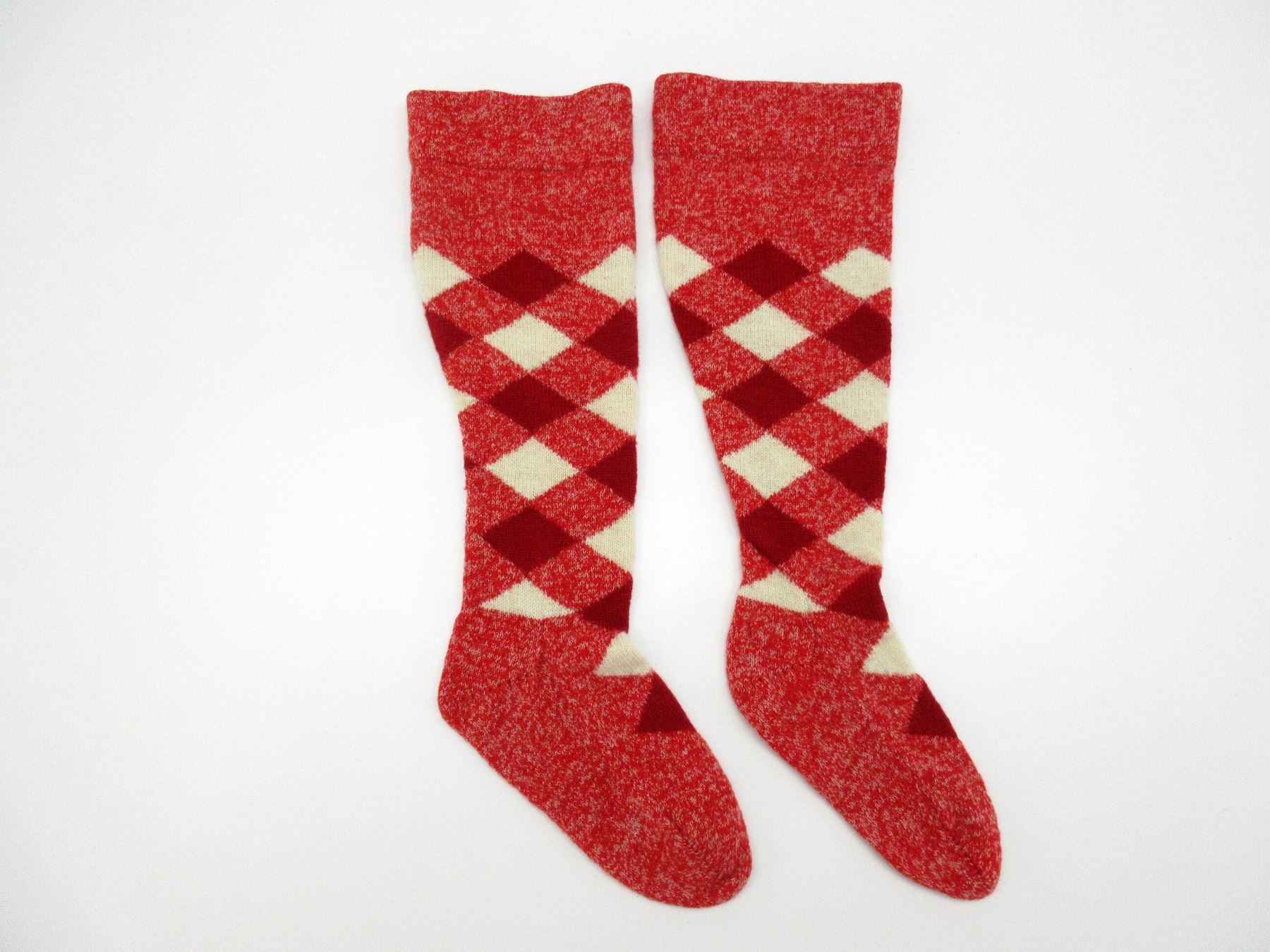 (1) PAIR OF RED / WHITE SCOTTISH REGIMENT KILT HOSE / SOCKS, NO VISIBLE MARKINGS, SIZE UNKNOWN, OAL APPROX. 25". SEE PHOTOS.