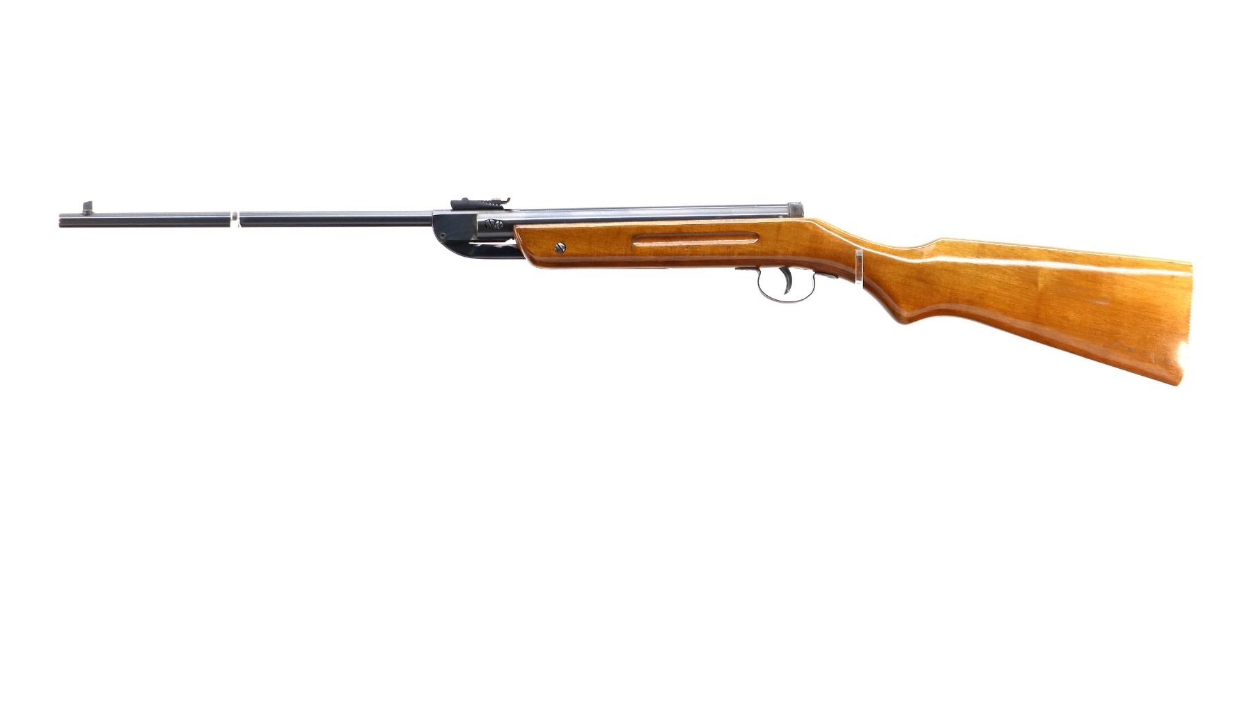 Main Description: Blade front sight, adjustable u notched rear sight, blued finish. One piece wood stock, finger grooved forearm, pistol grip cracked behind receiver, grooved butt, cracked behind trigger guard.