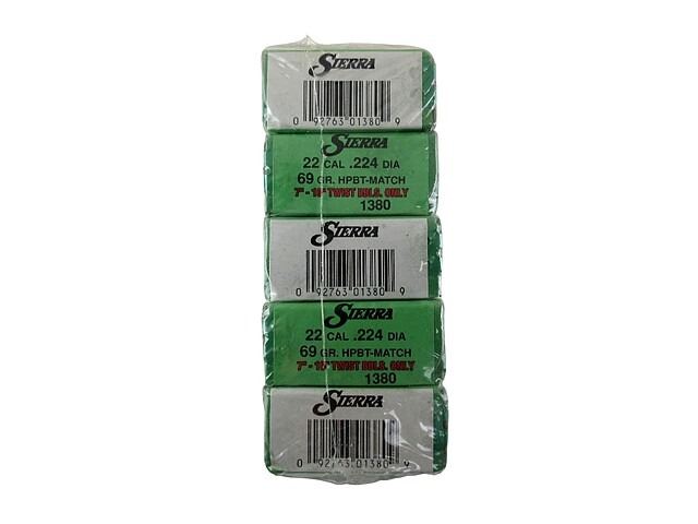 LOT INCLUDES; APPROX. (500) BULLETS, APPROX. DIA .224", 69 GRNS (STATED ON BOXES NOT CONFIRMED) HPBT-MATCH, UNOPENED.