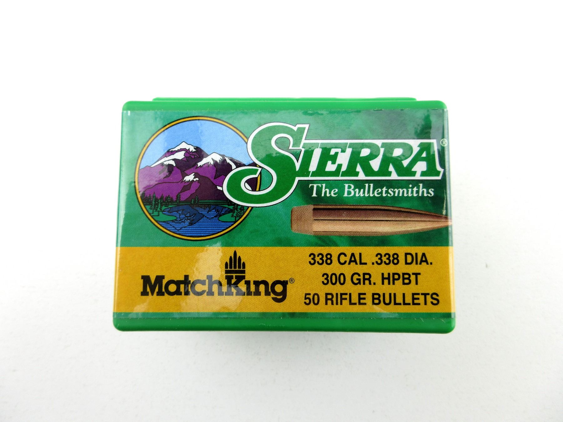 LOT INCLUDES; APPROX. (50) BULLETS, APPROX. DIA .338", 300 GRNS (STATED ON BOX NOT CONFIRMED) HPBT, UNOPENED.