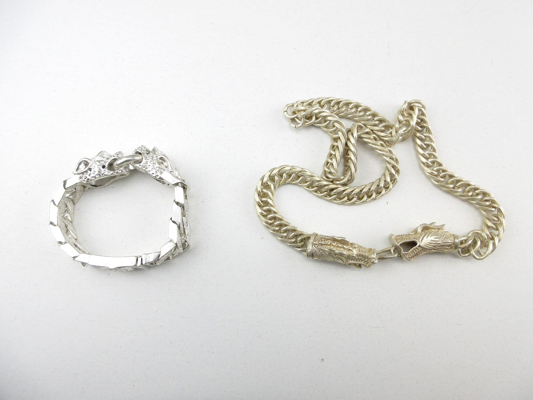 SILVER TYPE DRAGON BRACELET AND CHAIN LOT