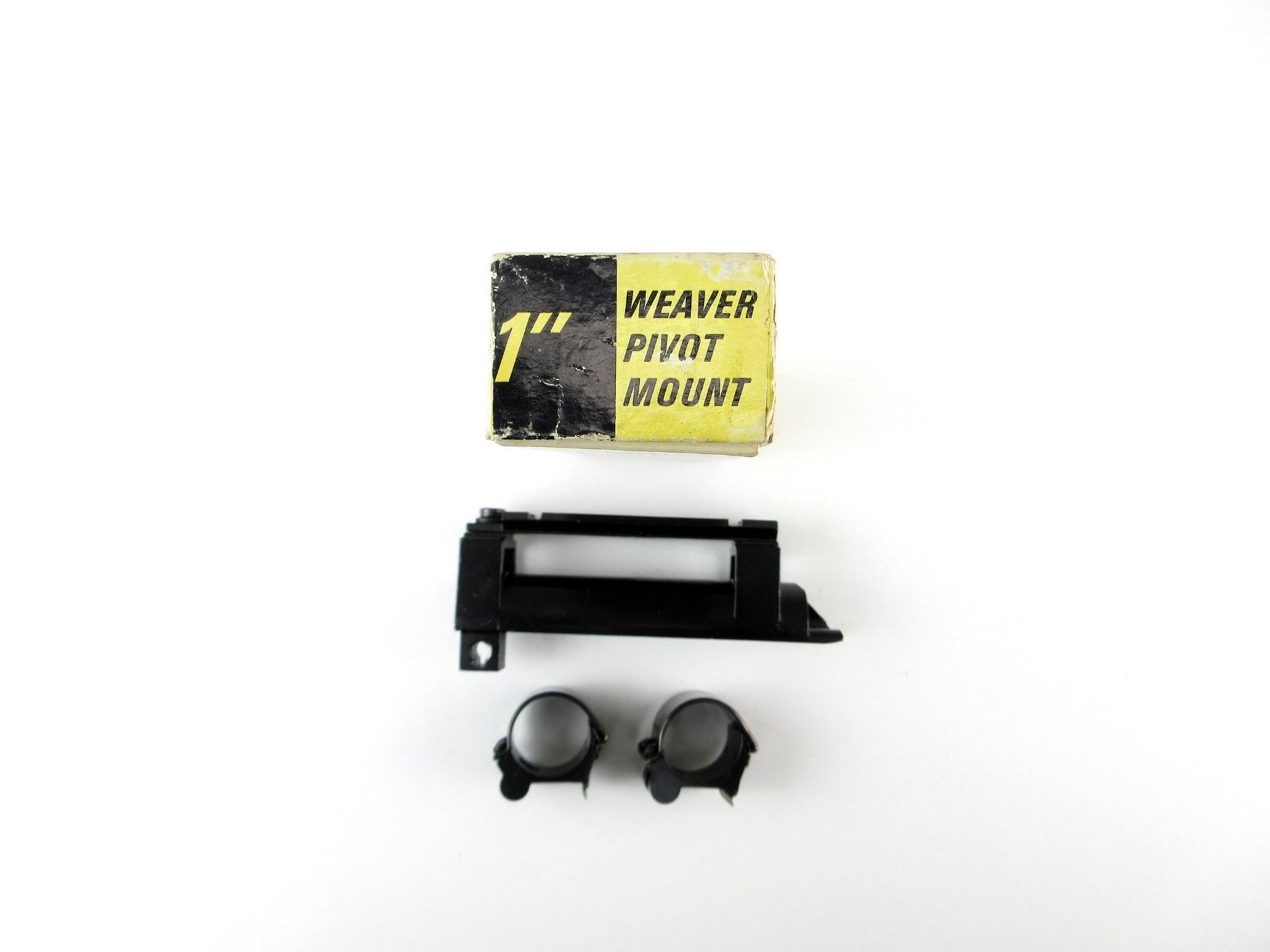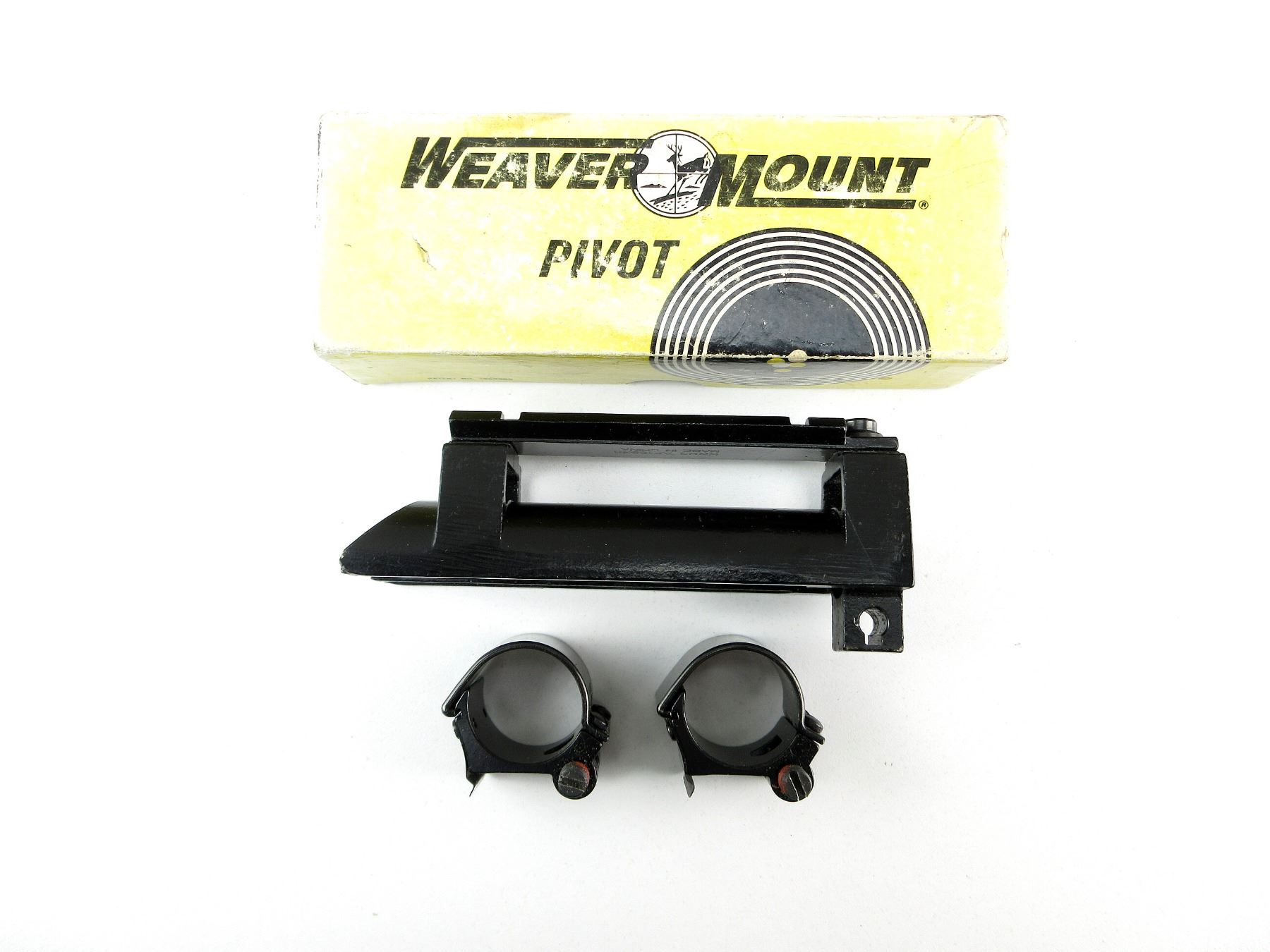 LOT INCLUDES; (1) SKS RECEIVER COVER SCOPE MOUNT, BLACK PAINTED STEEL CONSTRUCTION, SCOPE MOUNT BASE MARKED: "KRM3 AF10930, MADE IN CHINA, (1) PAIR OF WEAVER SCOPE RINGS, 1" DIAMETER, PIVOT MOUNT, WITH ORIGINAL BOX. SEE PHOTOS.