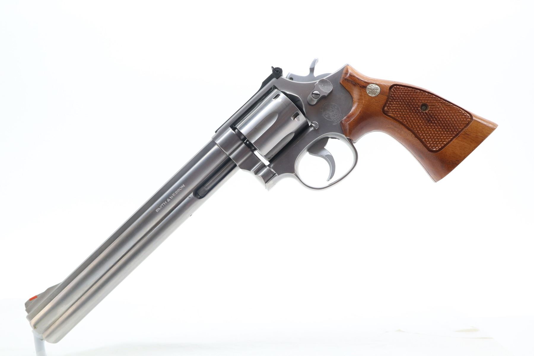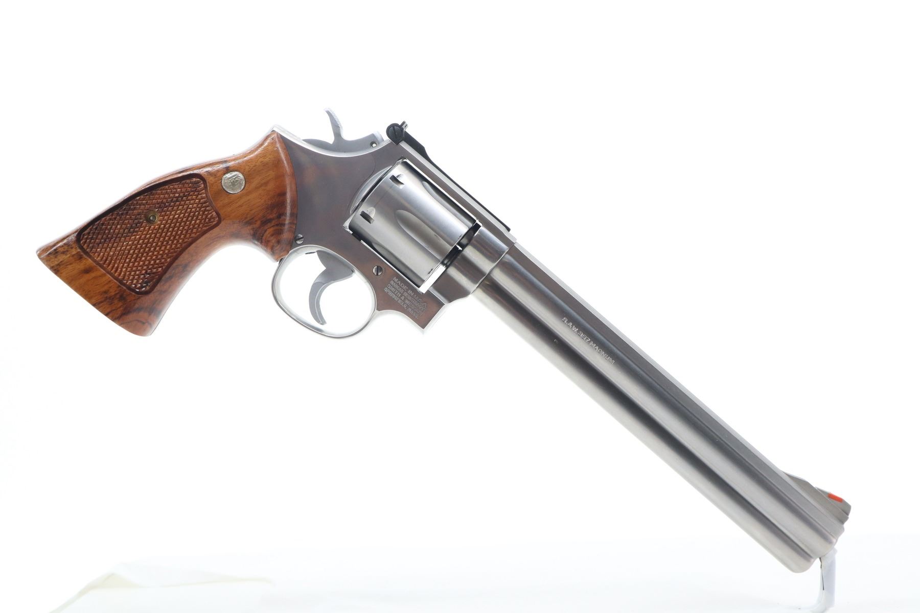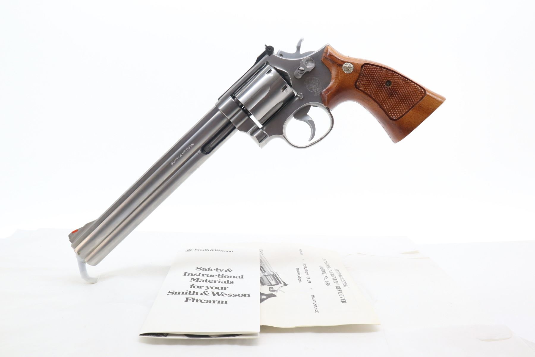 8+/10 , SMITH & WESSON , MODEL: 686 , CALIBER: 357 MAG , COMES WITH MANUAL , BORE IS VERY GOOD. FUNCTIONS MECHANICALLY AS DESIGNED. BLADE FRONT AND ADJUSTABLE REAR SIGHT. CHECKERED TWO PIECE WOOD GRIPS WITH S&W LOGO. SHOWS VERY LITTLE HANDLING MARKS. , ACTION: REVOLVER , BARREL LENGTH: 213MM , CONDITION: 8+/10 , SERIAL # AFP4623 , CLASS: CANADIAN RESTRICTED CLASS