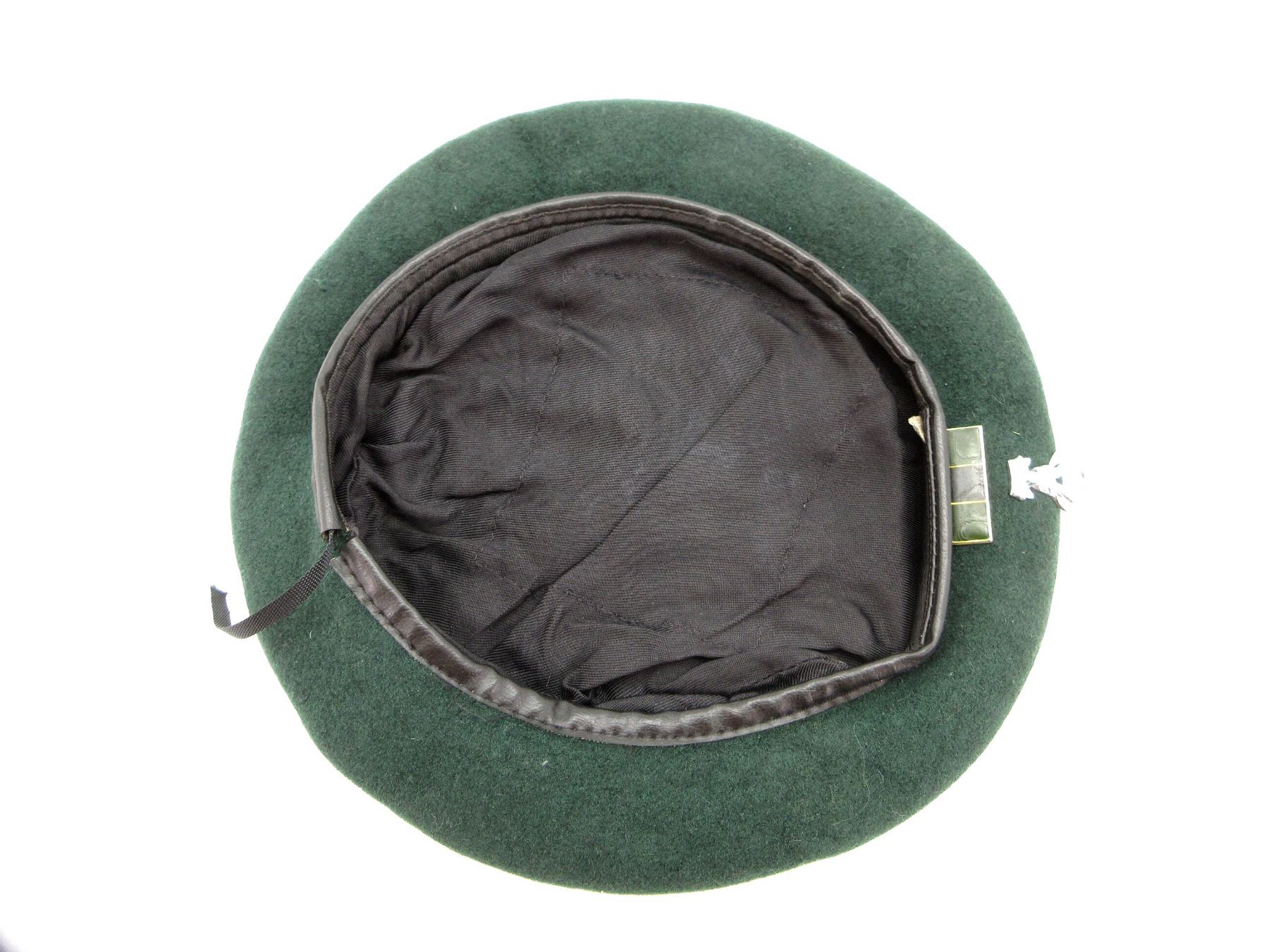 (1) GREEN WOOL BERET WITH INFANTRY BADGE & RANK BAR BADGE, NO VISIBLE MARKINGS, CONSIGNOR STATES: "CIRCA 1960'S", SHOWS WEAR / SLIGHT TEAR. SEE PHOTOS.