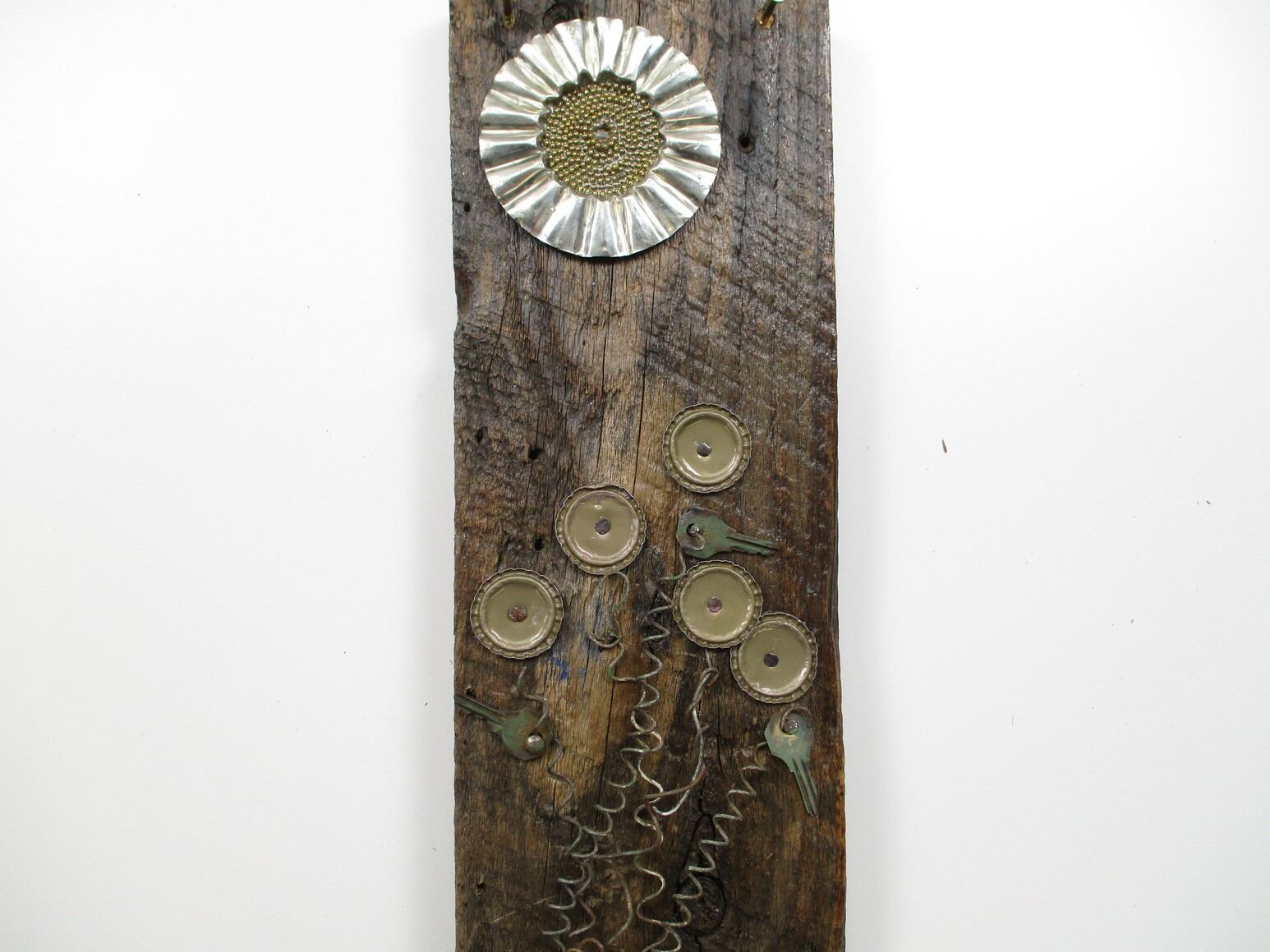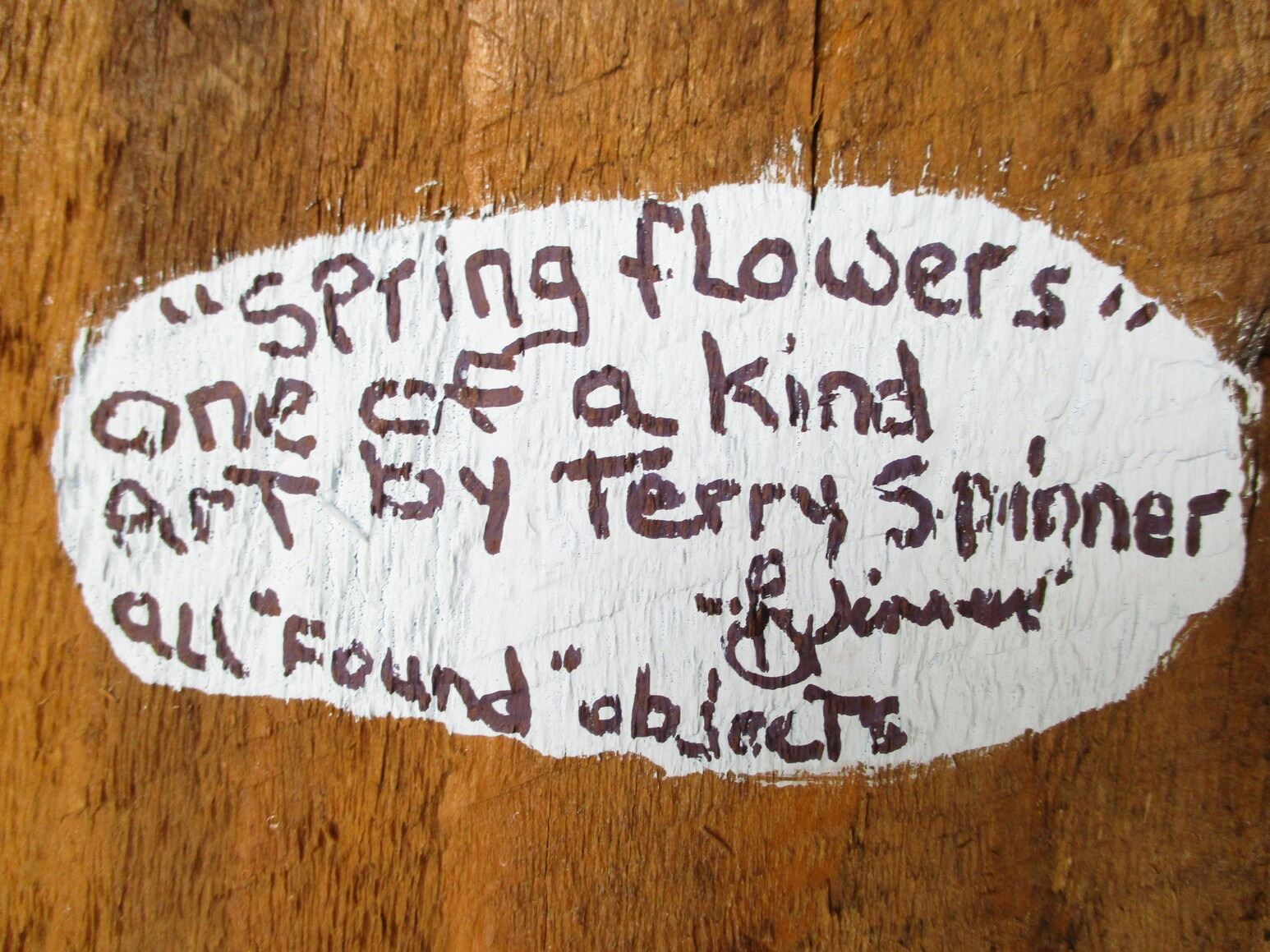 "SPRING FLOWERS" RECLAIMED ART , ON RECLAIMED BARNBOARD AND USING REPURPOSED HARDWARE THIS ONE-OF-A-KIND ARTWORK CAN BE MOUNTED IN OR OUTDOORS , RETAIL VALUE $70, GENEROUSLY DONATED BY TOADESTONE