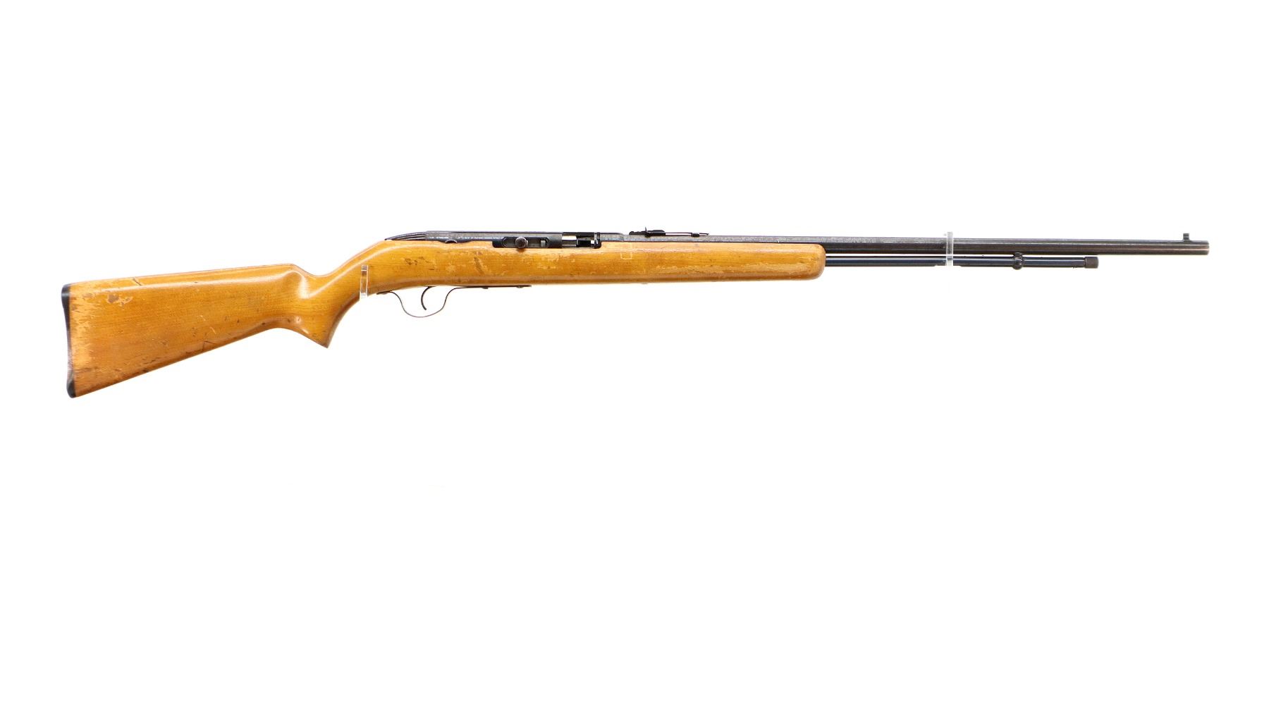 Main Description: This rifle does not have a working action requires parts or repair, trigger guard and screws are replacements. Blade front sight, adjustable u notched rear sight, grooved receiver. One piece wood stock, pistol grip, grooved black polymer butt plate