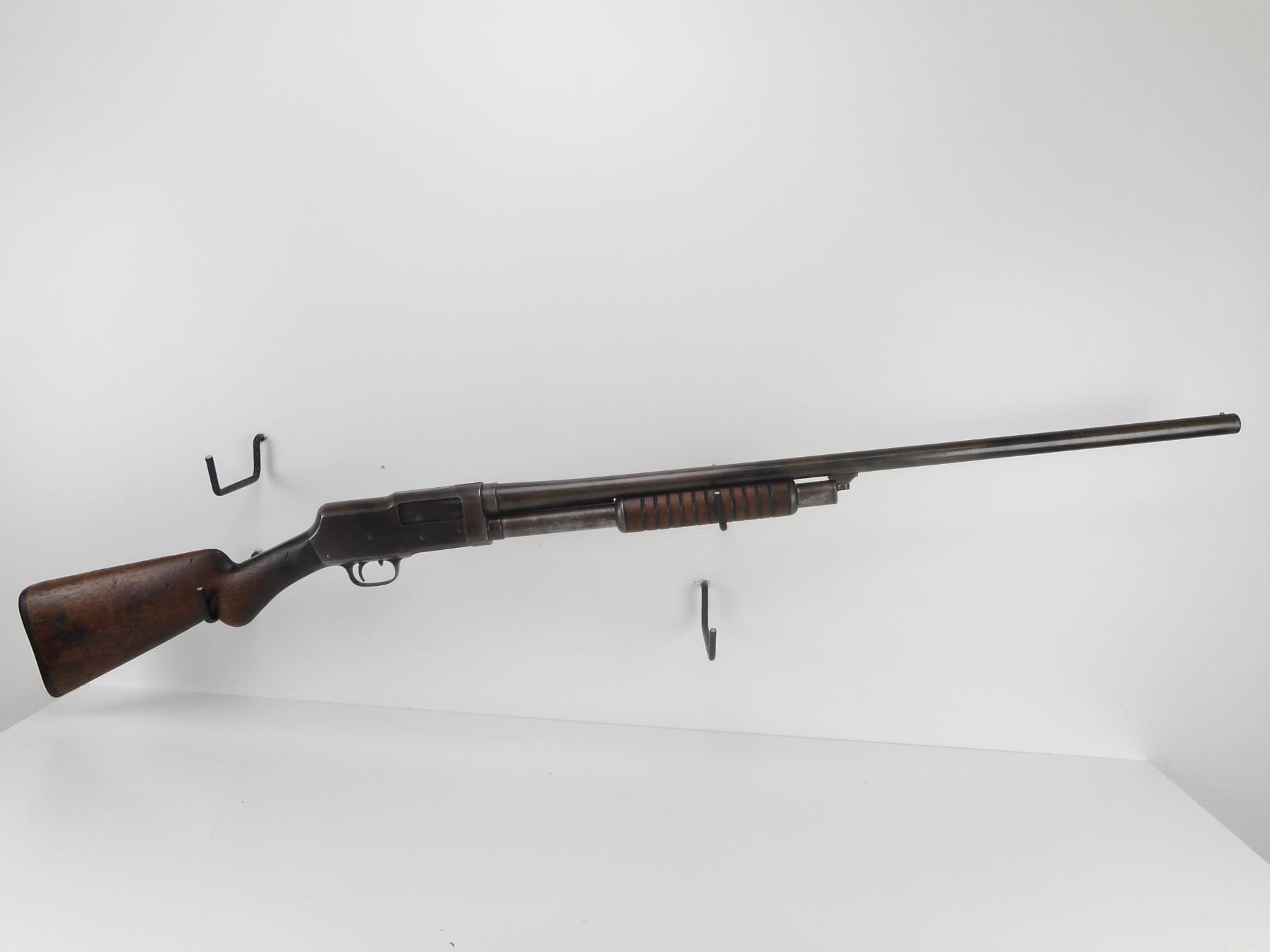 STEVENS , MODEL: 1907 , CALIBER: 12 GA X 2 3/4" , VERY GOOD BORE. FULL CHOKE. BEAD FRONT SIGHT. TWO PIECE HARDWOOD STOCK. PLASTIC BUTTPLATE. SHOWS EXTENSIVE HANDLING MARKS. BARREL LENGTH: 30" , CONDITION: 5/10 , STOCK # NR10789, SERIAL # 33556, CLASS: CANADIAN NON RESTRICTED CLASS