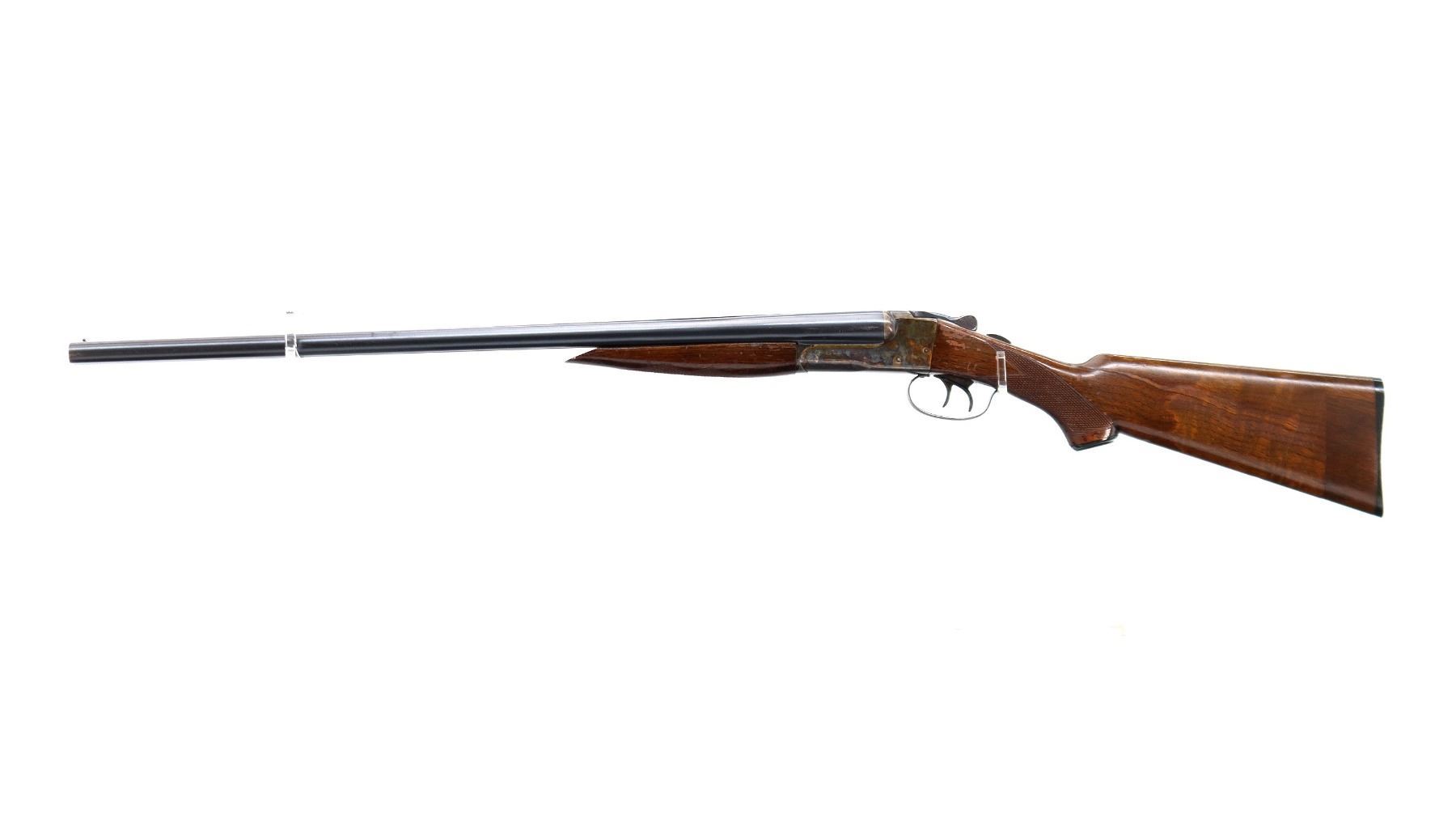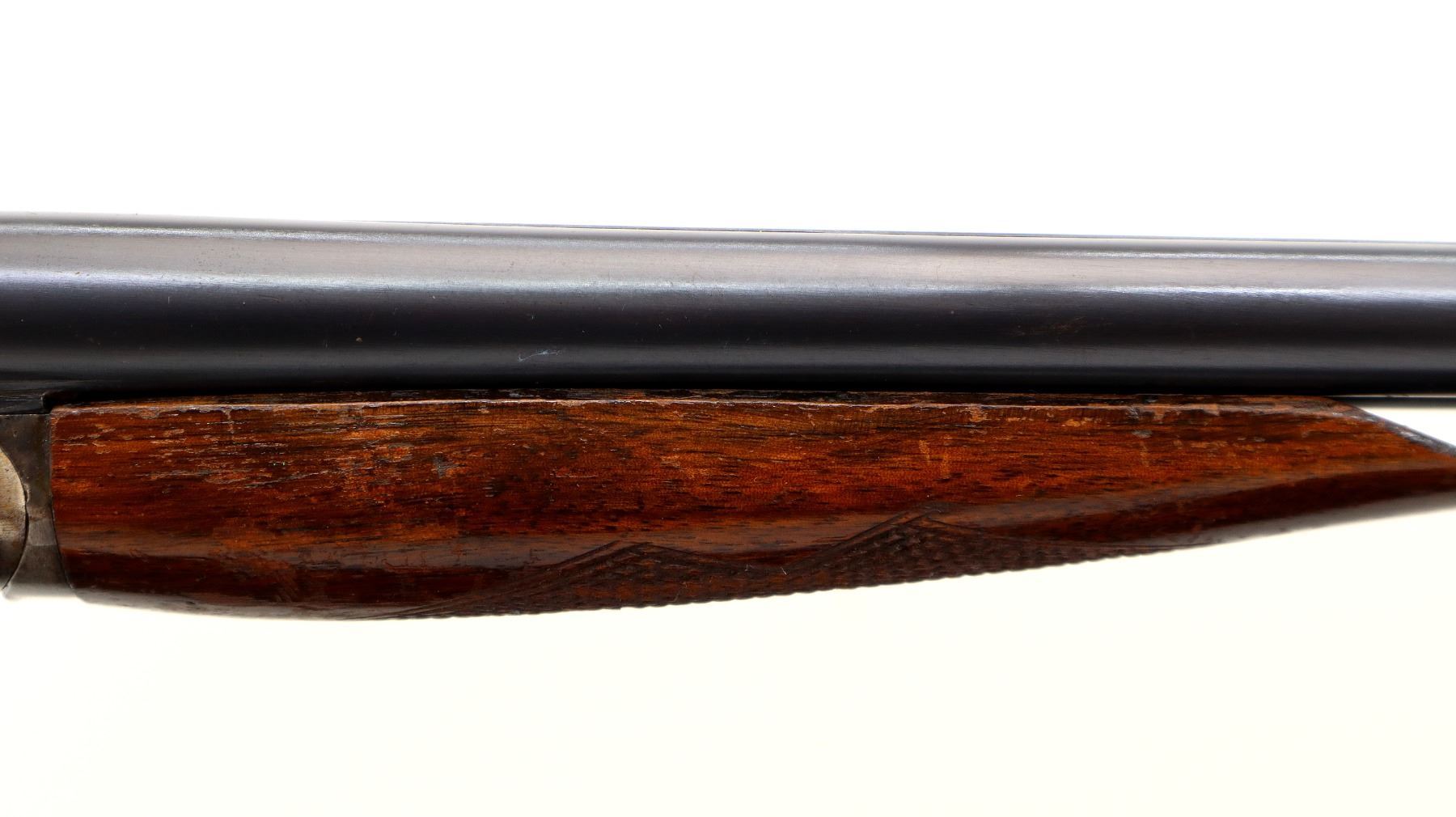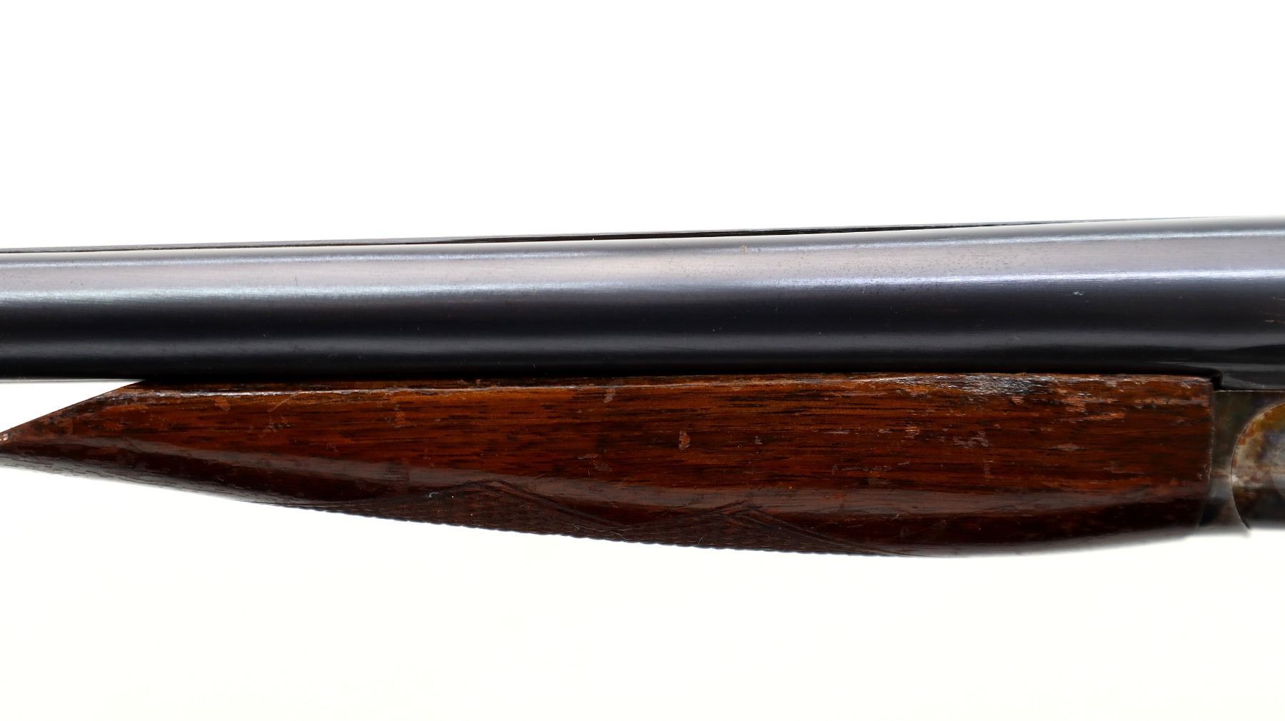 Main Description: Brass bead, blued barrels with raised rib with some lead solder showing on left side, colour case hardened receiver, automatic safety, extractor, double triggers. Two piece wood stocks, checkered forearm and pistol grip, grooved black polymer butt plate, stock has a wood extension and 14.25" LOP, grip cap