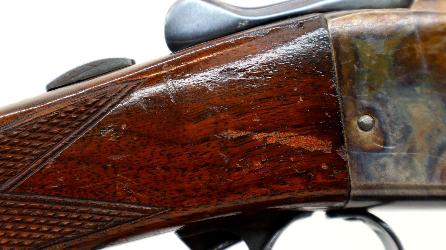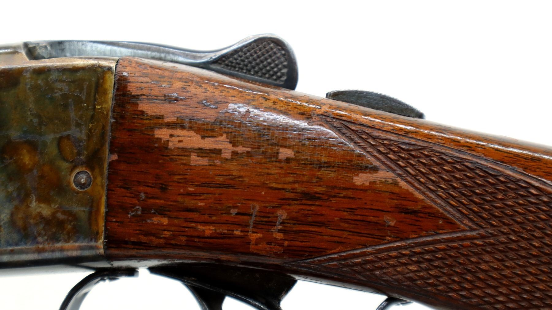 Wear: Metal finish shows a few light rust speckles, scratches, handling marks and wear. Stocks show marks, scratches and wear.