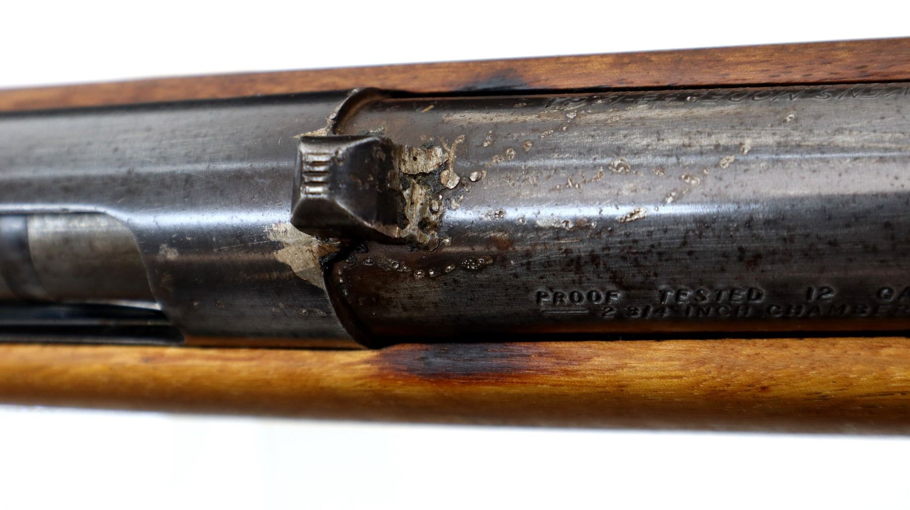 Wear: Metal finish shows some light rust speckles, scratches, handling marks and wear. Stock shows some marks, scratches and wear.