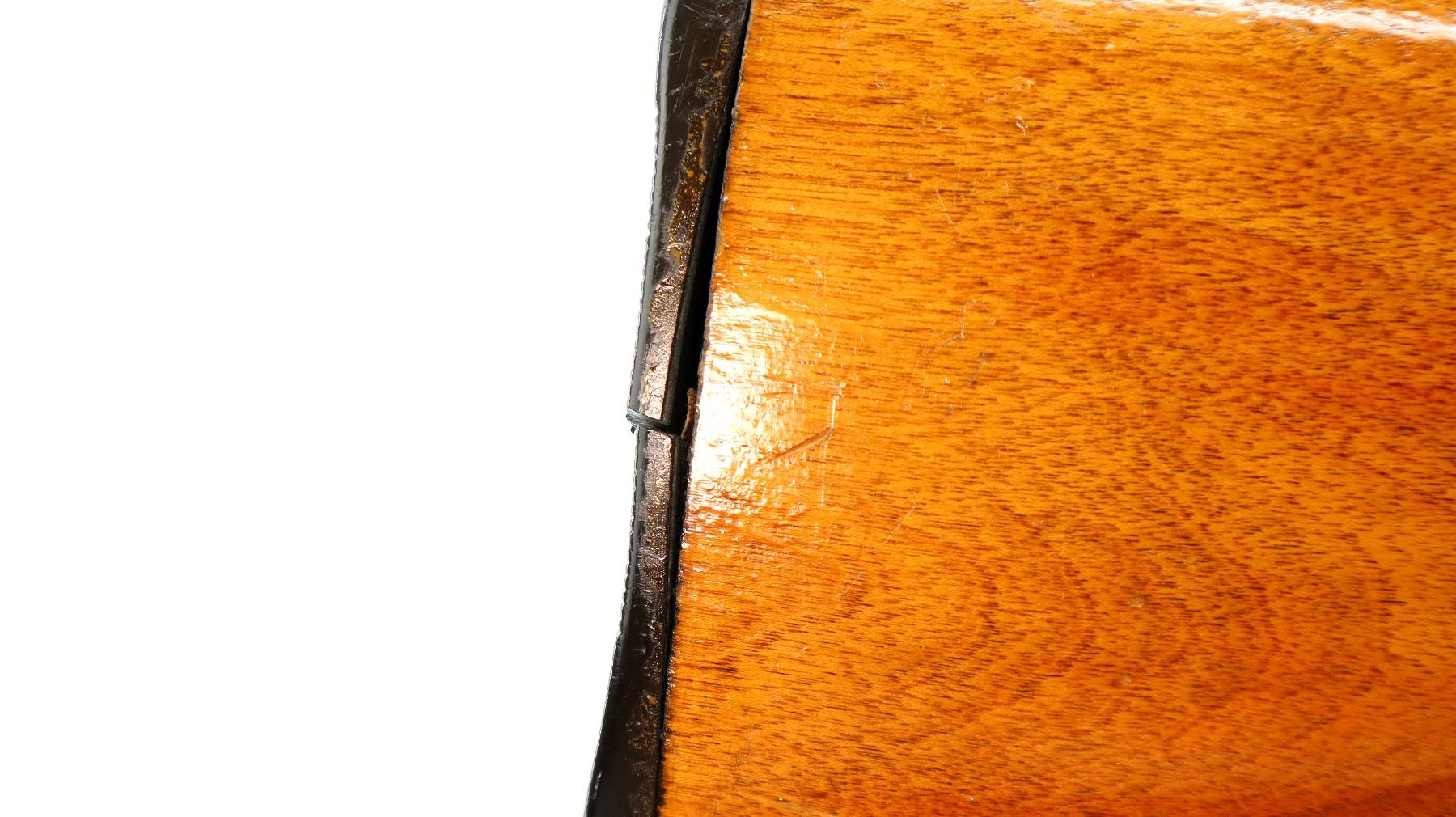 Main Description: Post front sight with hood and ramp, broken rear sight missing elevator, receiver drilled and tapped with unknown scope base, various holes at rear, missing complete bolt assembly and inner magtube. One piece wood stock, pistol grip, grooved black polymer butt plate which is cracked