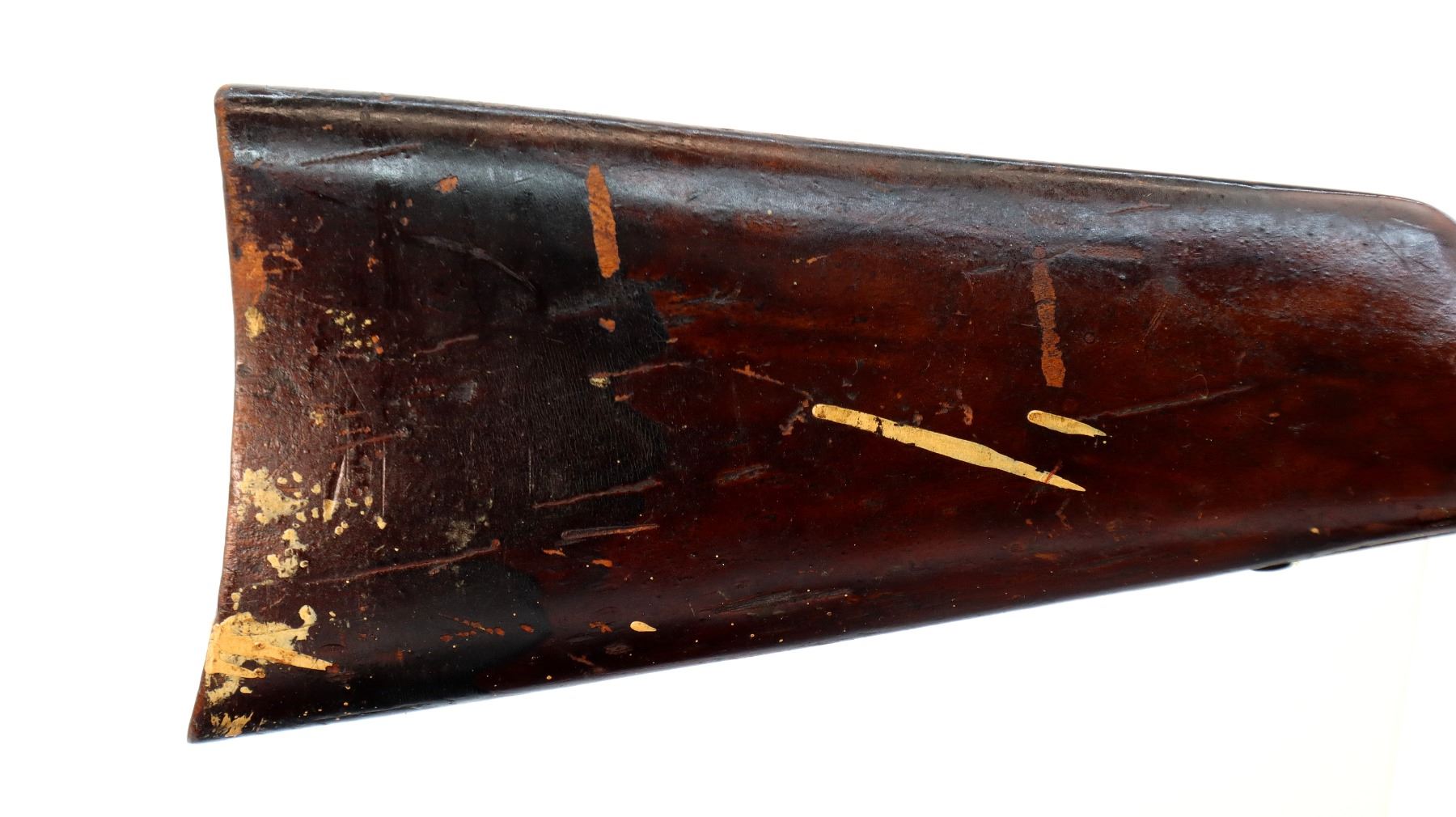 Wear: Metal finish turning brown with pitting, rust overall, scratches, handling marks and wear. Stock shows marks, scratches and wear.