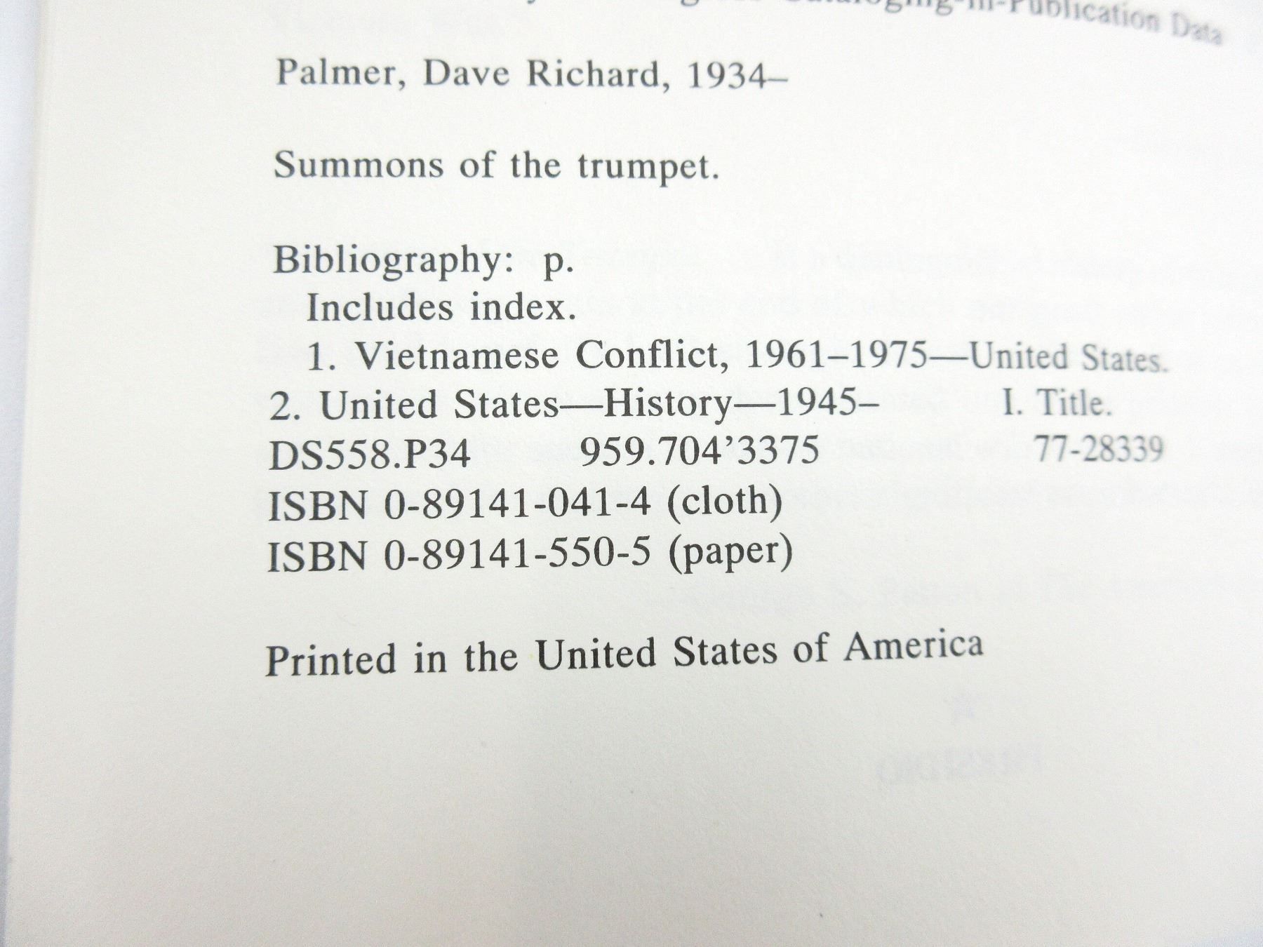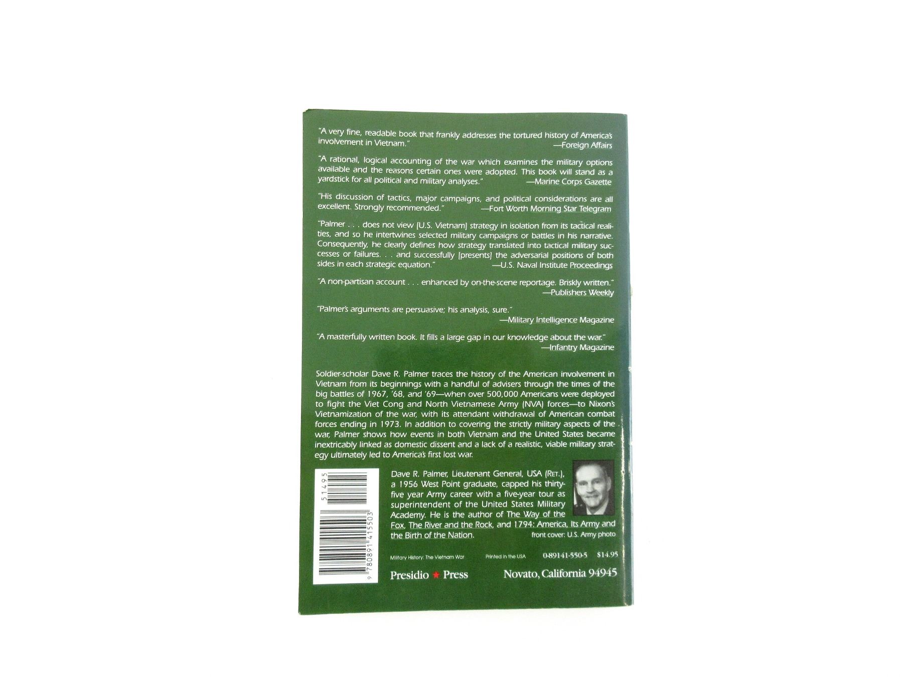 (1) "U.S. - VIETNAM IN PERSPECTIVE" BY DAVE R. PALMER, SOFT COVER, ISBN: 0-89141-550-5. SEE PHOTOS.