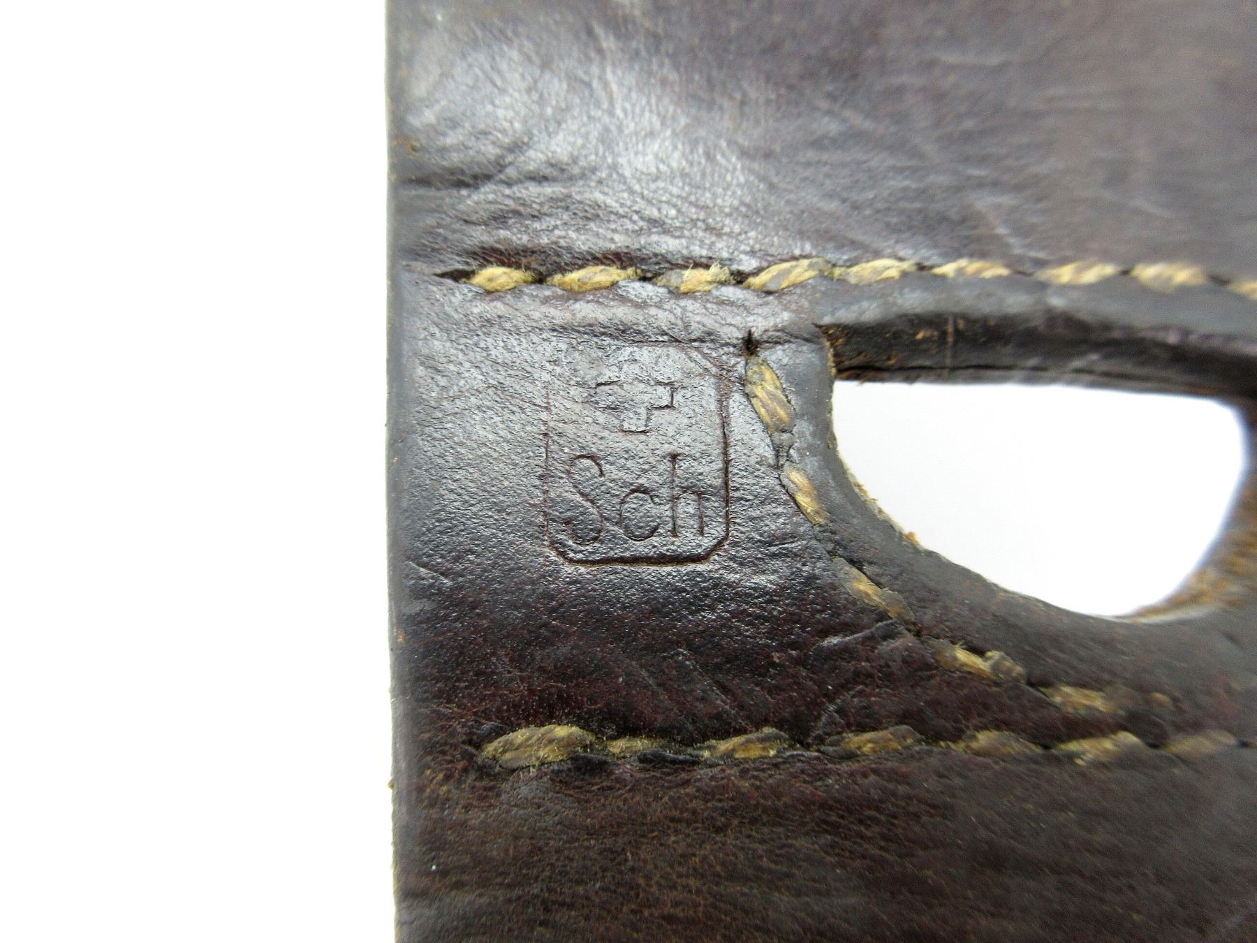 (1) FITS 7.5MM M1911 CARBINES & M1931 SHORT (K31) RIFLES, RICASSO PARTIALLY MARKED: "WAFFENFABRIK, NEUHAUSEN", CROSS-PIECE MARKED: "159318" WITH SWISS CROSS & PROOF MARK, 2-PIECE WOOD GRIP, METAL POMMEL, NO VISIBLE MARKINGS, STEEL SCABBARD WITH LEATHER FROG, NEAR THROAT MARKED: "P", PARTIAL / FAINT PROOF MARK ON THROAT, LEATHER FROG MARKED: SWISS CROSS, "SCH" IN RECTANGLE & "H. BERGER, SELLERIE, PREZ - VERS????ZAZ, 40", BLADE APPROX. 11 5/8" & OAL APPROX. 16.75". SEE PHOTOS.
