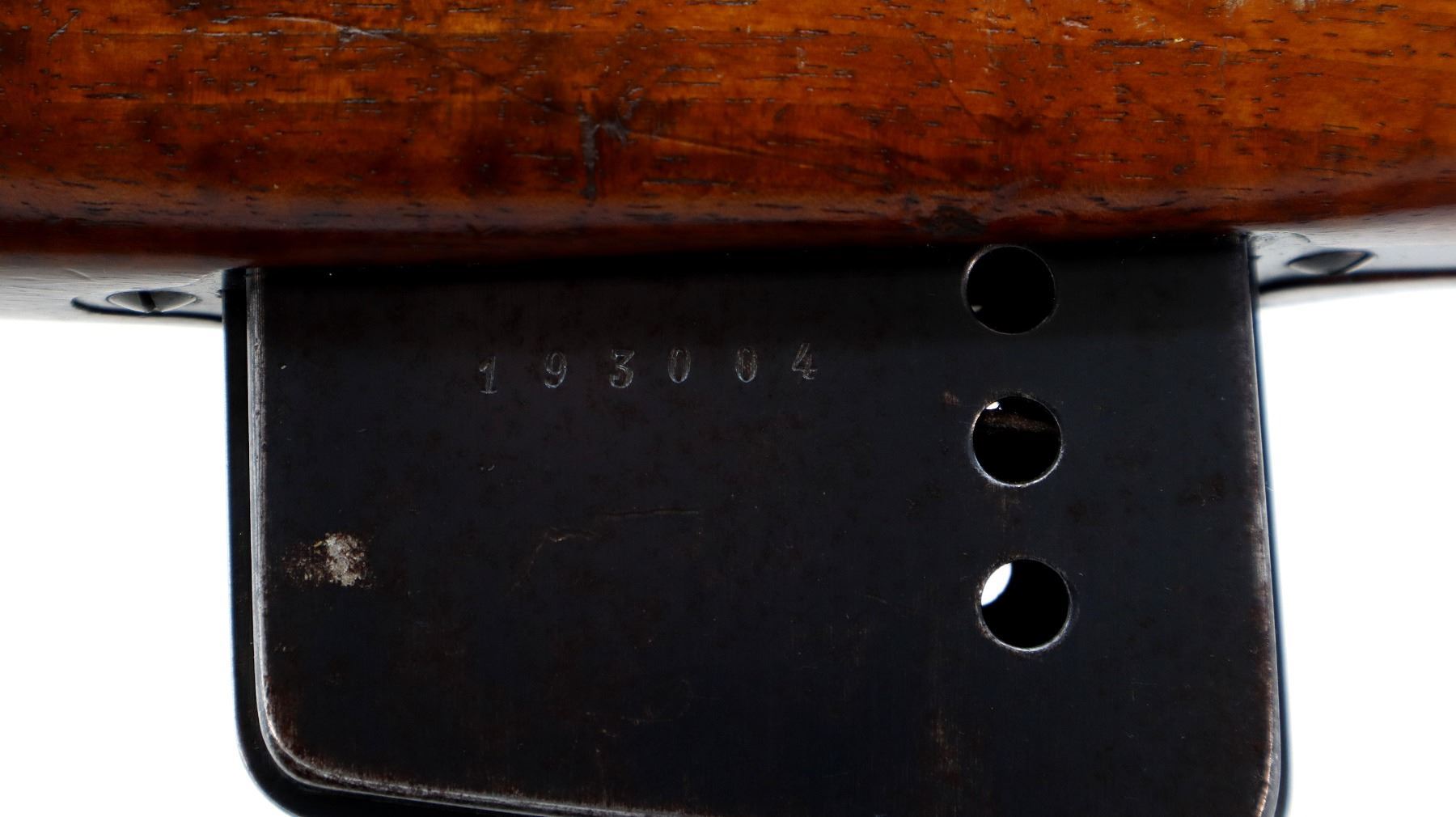 Wear: Metal finish shows a few light rust speckles, scratches, handling marks and wear. Stocks show some marks, scratches and wear.
