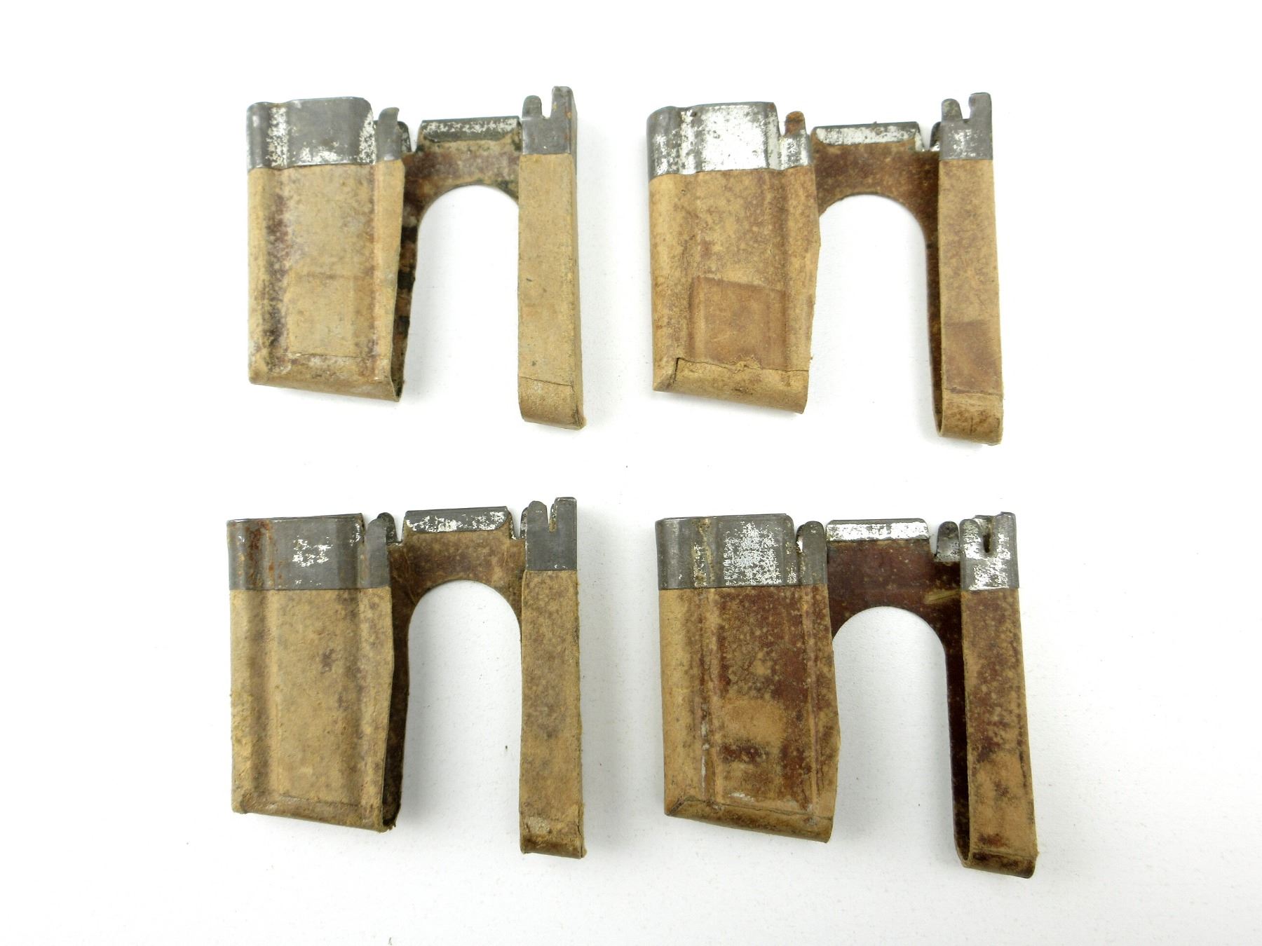 (4) FITS 1889 / 1911 & K31 RIFLE MODELS, 7.5X55 MM, 6-RNDS, CARDBOARD & TIN MATERIALS, NO VISIBLE MARKINGS. SEE PHOTOS.
