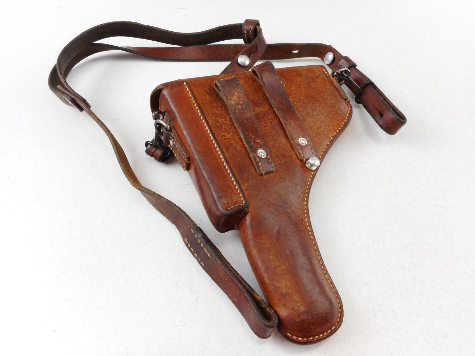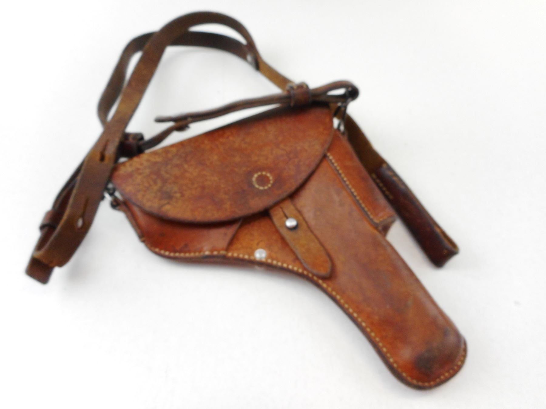 SWISS SIG P210 HOLSTER , POLICE ISSUE, WITH BELT LOOPS AND SHOULDER STRAP. MARKED CROSS WY, F. BURR. REICHENBACH 71.
