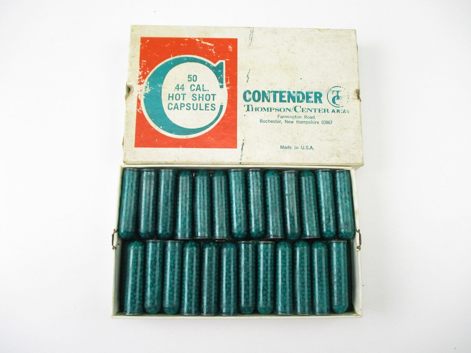 THOMPSON CENTER .44 CAL HOT SHOT CAPSULES LOT, APPROX 48 RNDS, SEE PHOTOS.