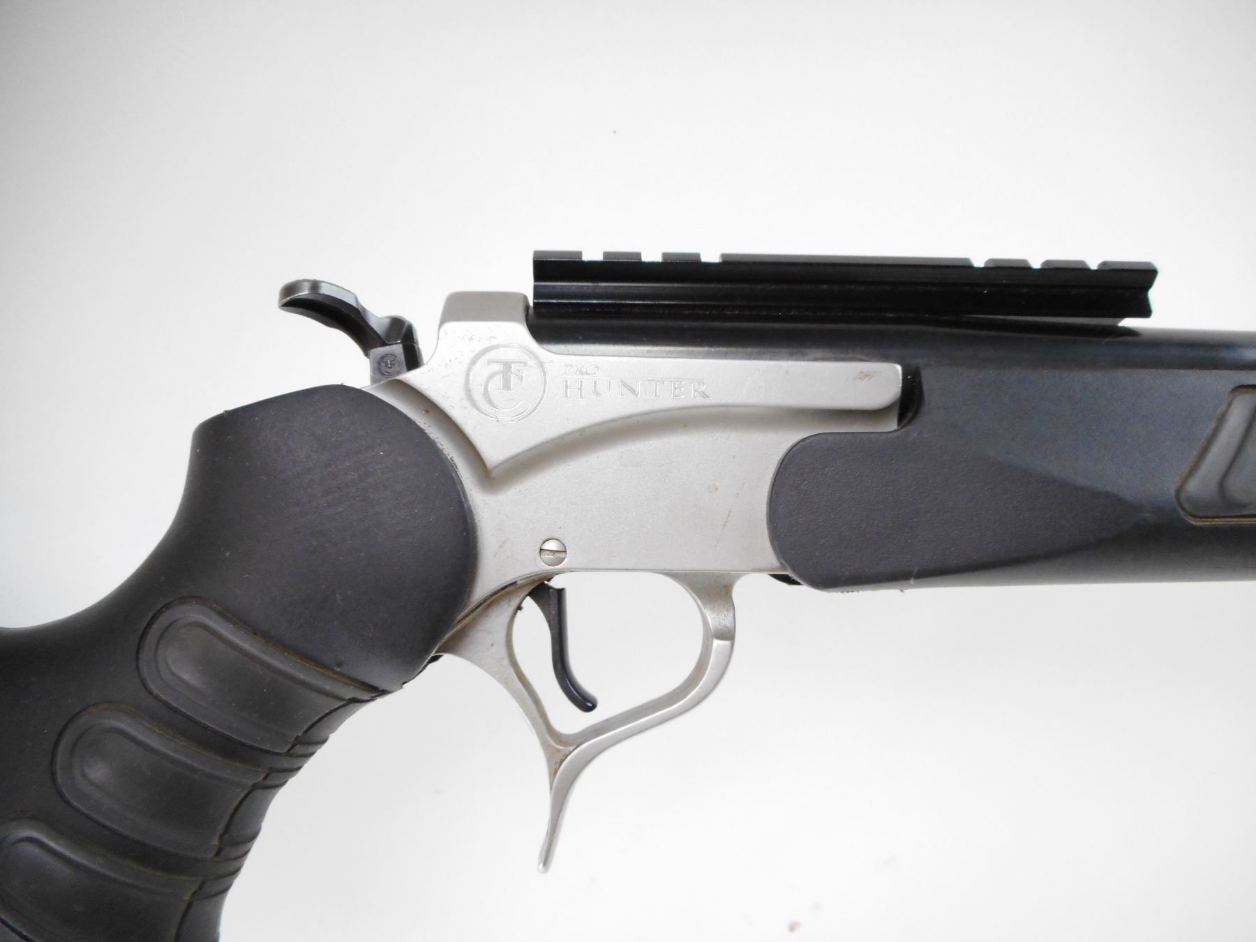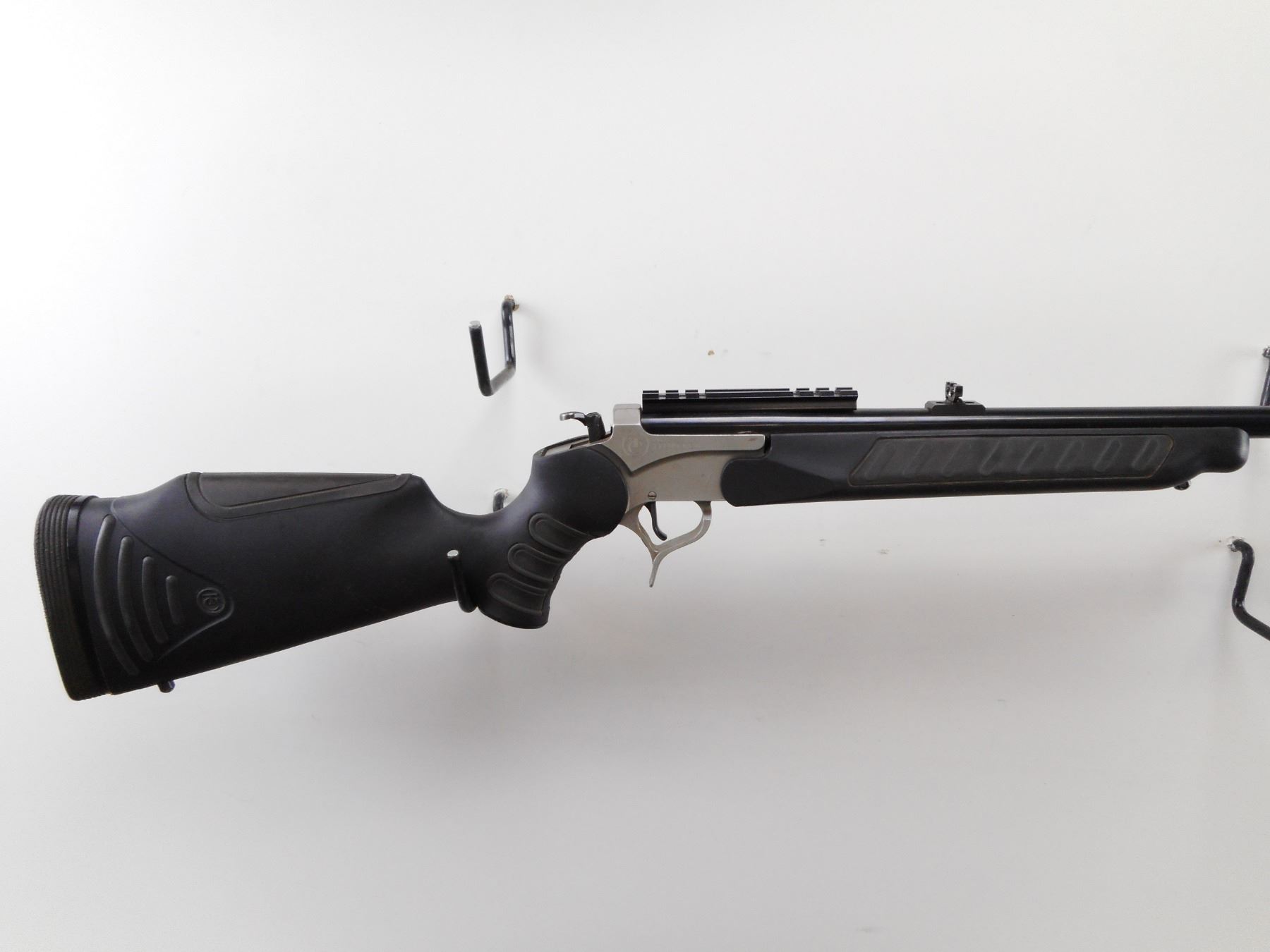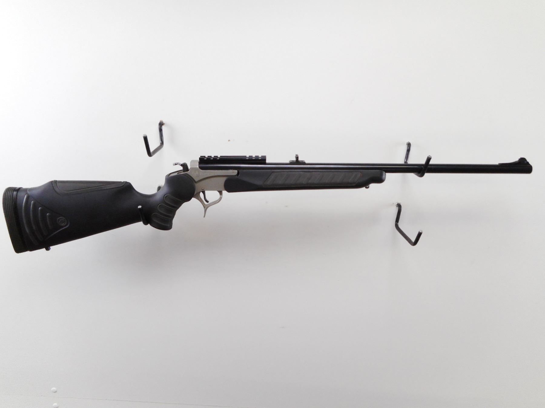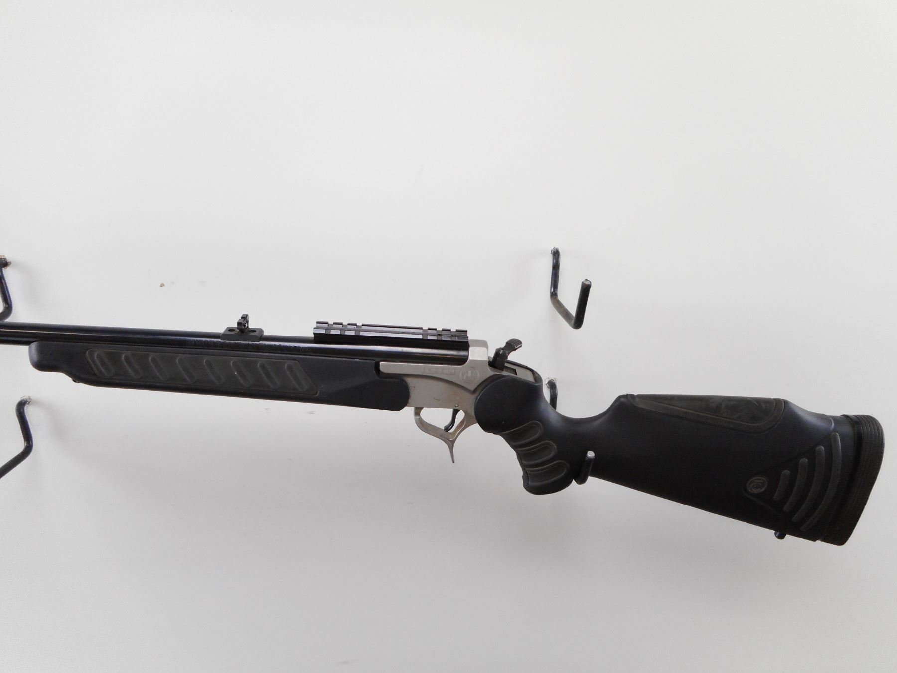 THOMPSON CENTER , MODEL: ENCORE , CALIBER: 243 WIN , BORE IS EXCELLENT. BLADE FRONT SIGHT WITH RAMP. ADJUSTABLE FOLDING U NOTCH REAR SIGHT. WEAVER SCOPE BASE INSTALLED. BLUED BARREL. STAINLESS RECEIVER TWO PIECE BLACK SYNTHETIC STOCK WITH SOFT RUBBER PANELS. BLACK RUBBER RECOIL PAD. SLING STUDS. FINISH SHOWS MINOR WEAR AND HANDLING MARKS. STOCK SHOWS MINOR WEAR AND SCRATCHES. THERE ARE ADDITONAL BARRELS AVAILABLE IN SESSION 2 AS LOTS 22026/22027/22028/22028/22029/22030 , SERIAL # PS84680 , ACTION: HINGE BREAK , BARREL LENGTH: 24" , CONDITION: 7/10 , CLASS: CANADIAN NON RESTRICTED CLASS