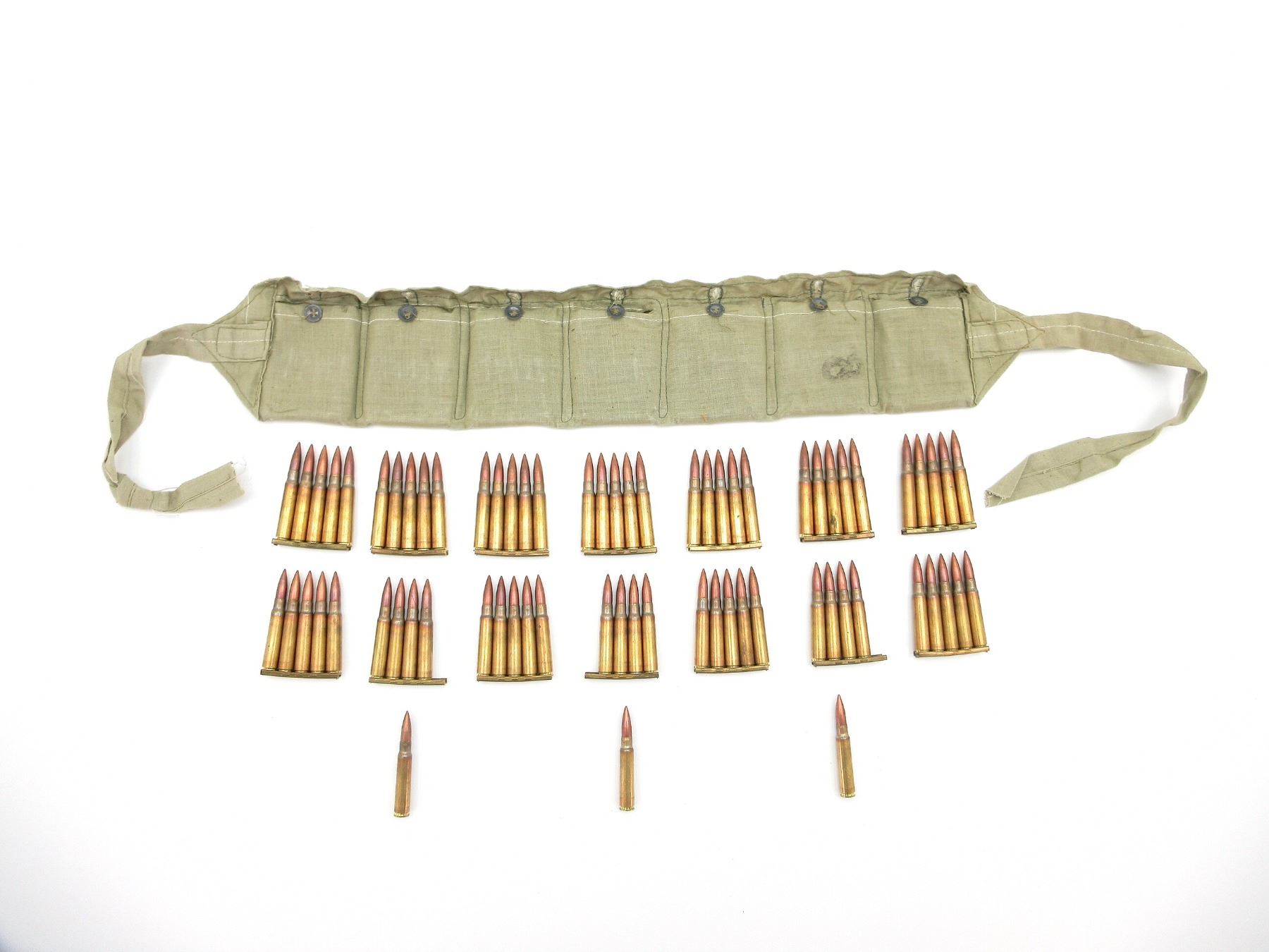 LOT INCLUDES; APPROX. (70) RNDS, FMJ, MARKED 1949, ON STRIPPER CLIPS, WITH COTTON BANDOLIER.