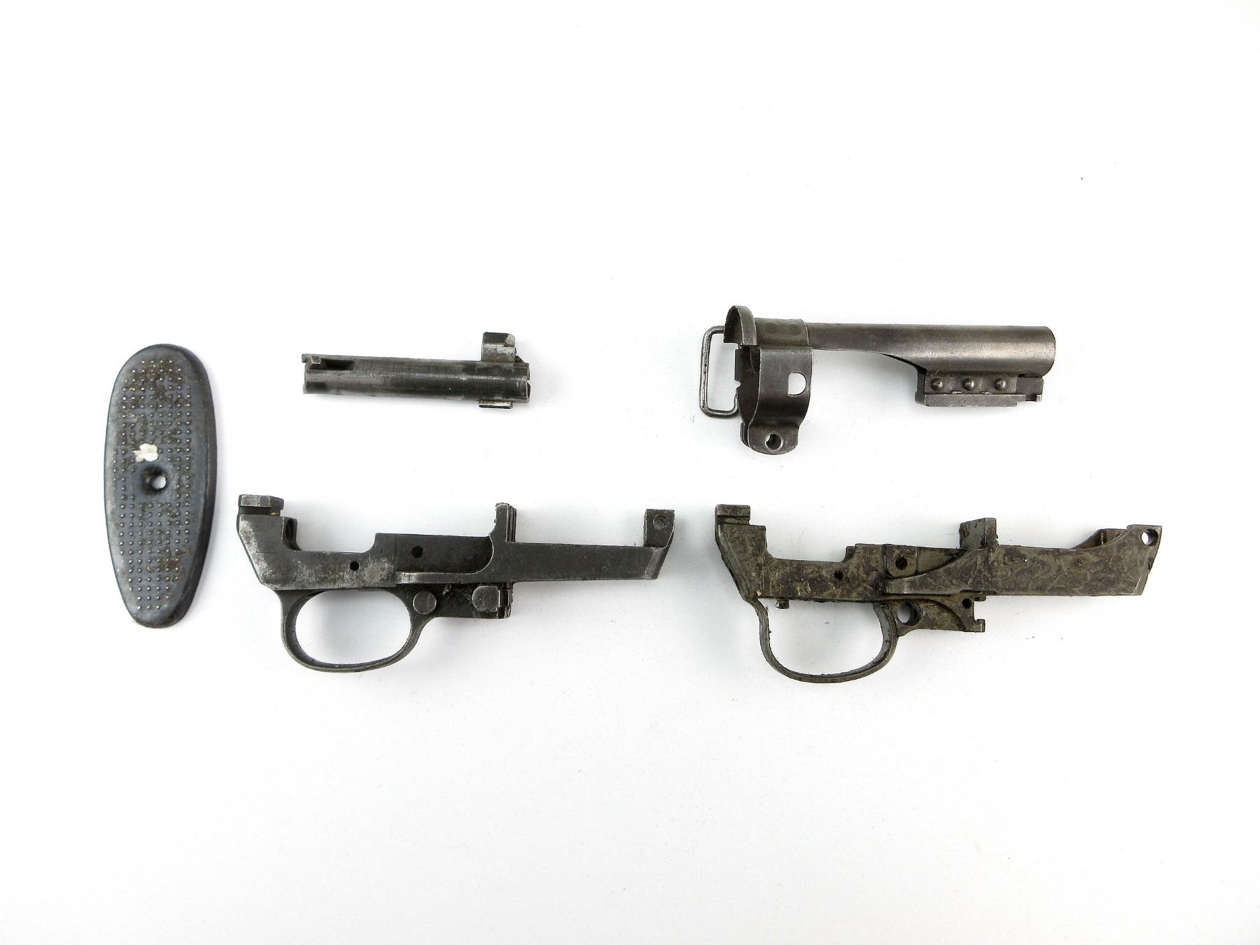 LOT INCLUDES; (1) RIFLE BOLT, APPEARS COMPLETE, WITH EXTRACTOR & FIRING PIN, MARKED: "X, 10, 3", (1) TRIGGER GUARD, STEEL CONSTRUCTION, MARKED: "INLAND", (1) TRIGGER GUARD, TWO PIECE, STAMPED, GREASED, (1) BARREL BAND WITH BAYONET LUG, STEEL CONSTRUCTION, (1) BUTT PLATE. MAY REQUIRE FITTING. SEE PHOTOS.