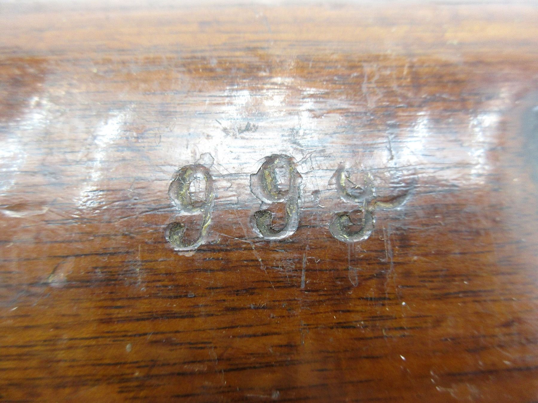 LOT INCLUDES; (1) RIFLE STOCK, WOOD CONSTRUCTION, MARKED: "999", WITH METAL BUTT PLATE, OAL APPROX. 28.5", (1) HANDGUARD, WOOD CONSTRUCTION, UNMARKED, OAL APPROX. 8.25". MAY REQUIRE FITTING. SEE PHOTOS.