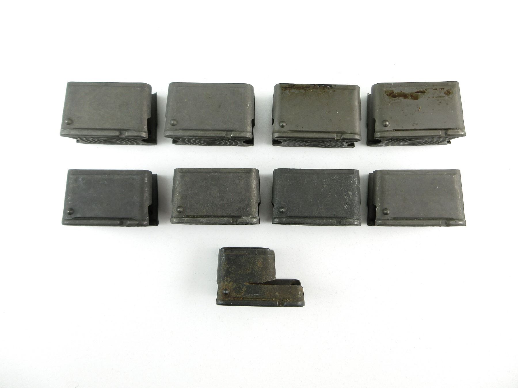 LOT INCLUDES; (9) M1 GARAND .30-06, 8-RND ENBLOCS, VARIOUS MARKINGS, ONE IS CUT / MODIFIED. SEE PHOTOS.