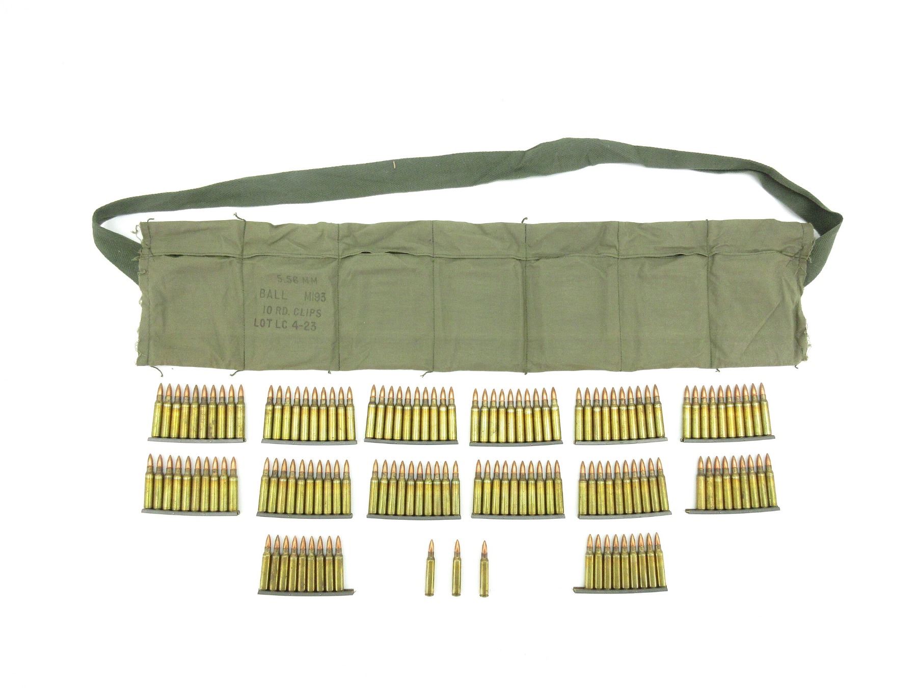 LOT INCLUDES; APPROX. (140) RNDS, BALL, M193, (14) STRIPPER CLIPS, (1) BANDOLIER MARKED LOT LC 4-23.