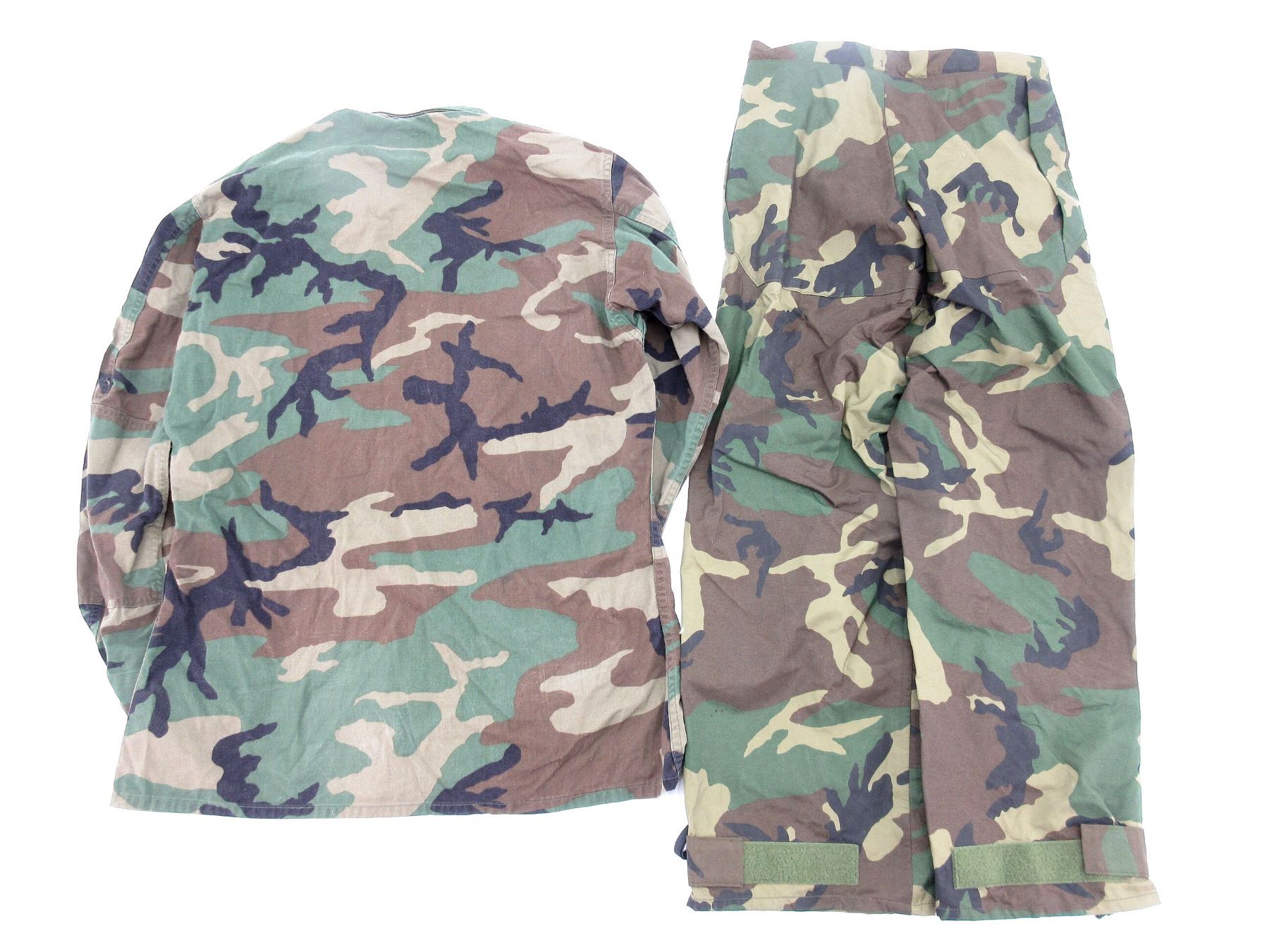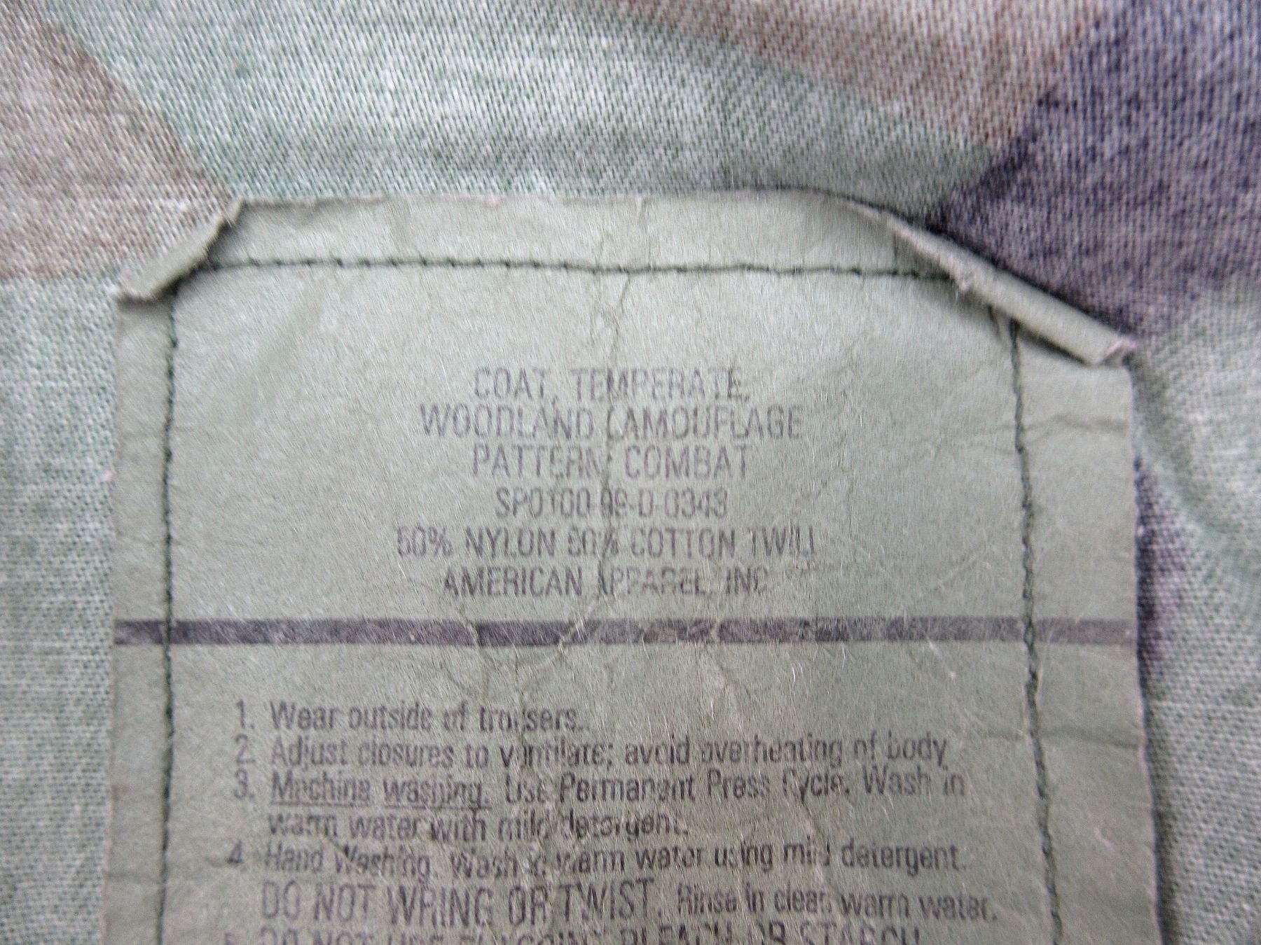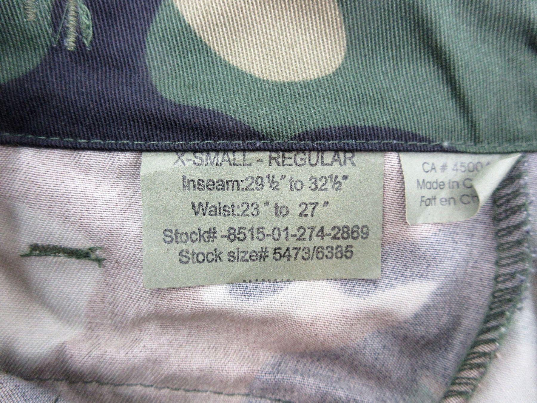 LOT INCLUDES; (1) EXTENDED COLD WEATHER CAMO NYLON PANTS, SIZE XS-SHORT, VARIOUS MARKINGS / LABELS, ZIPPERED-FLY (WORKS), VARIOUS ZIPPERS (WORKS), (1) WOODLAND CAMO COMBAT PANTS, SIZE XS-REGULAR, VARIOUS MARKINGS / LABELS, BUTTON-FLY, (1) UNIVERSAL CAMO PATTERN COMBAT COAT, SIZE M-SHORT, VARIOUS MARKINGS / LABELS, VELCRO / ZIPPERED-FRONT, APPEARS NOS, IN SEALED PACKAGING & (1) WOODLAND CAMO COMBAT COAT, SIZE M-LONG, VARIOUS MARKINGS / LABELS, BUTTON-FRONT, SHOWS WEAR. SEE PHOTOS.