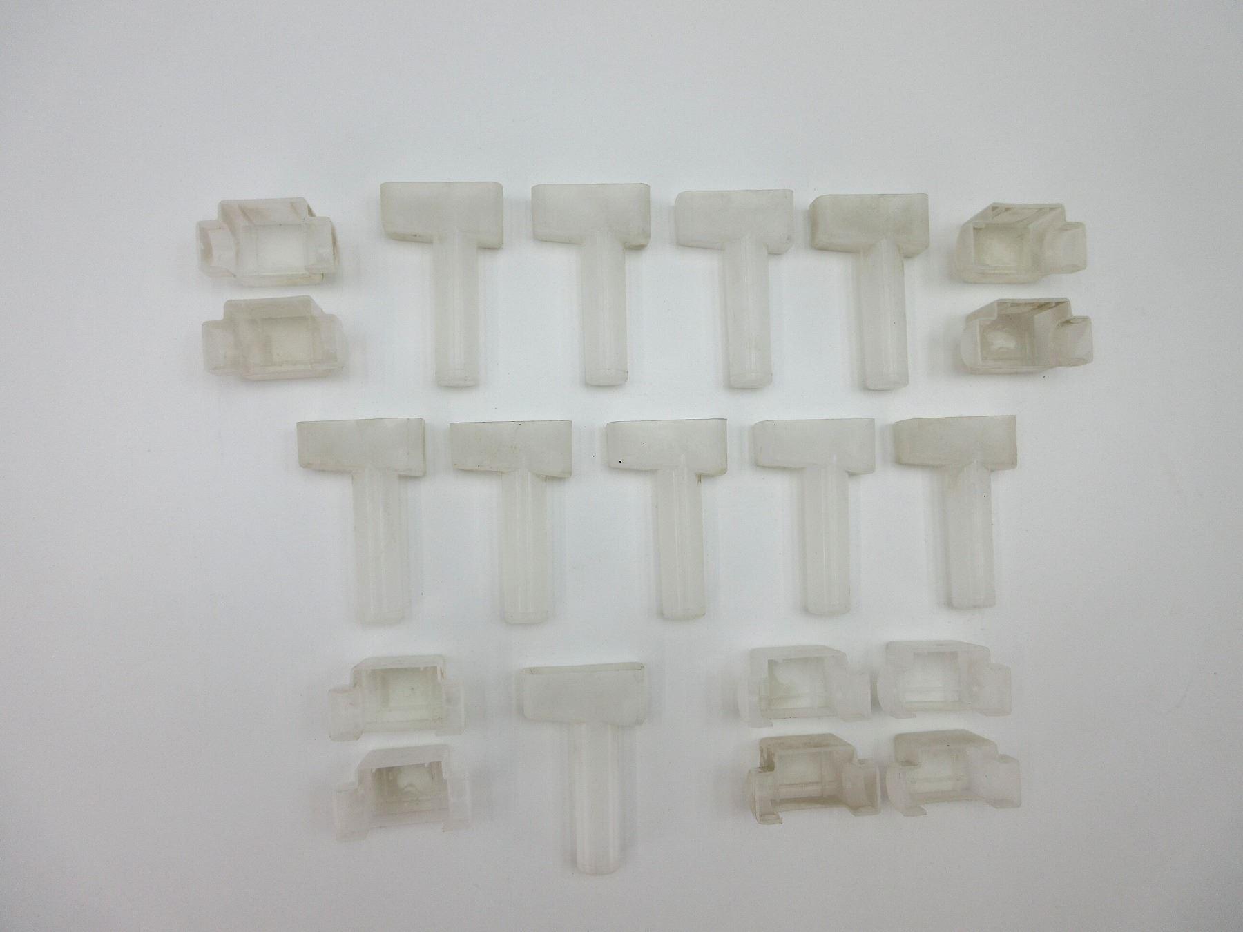 LOT INCLUDES; (10) PLASTIC SNAP-ON COVERS, PROTECTS FRONT / REAR SIGHTS & FLASH HIDER MUZZLE, VARIOUS MARKINGS, ONE WITH SLIGHT CRACK, OALS APPROX. 2.5" & 3 7/8". SEE PHOTOS.
