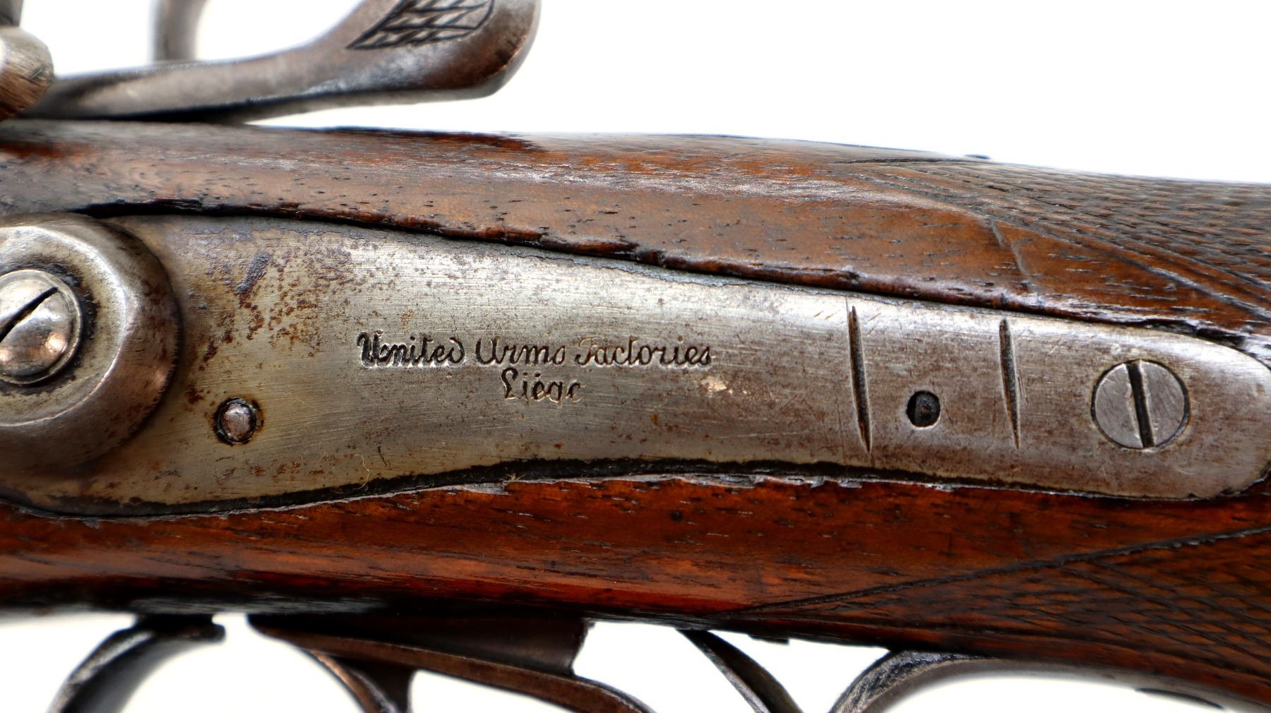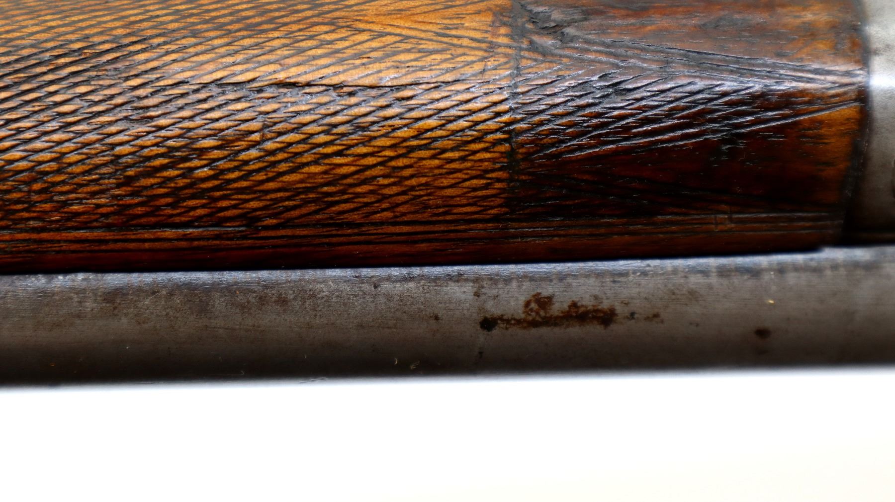 Wear: Metal finish shows some light rust speckles, scratches, handling marks and wear. Stocks show some marks, scratches and wear.