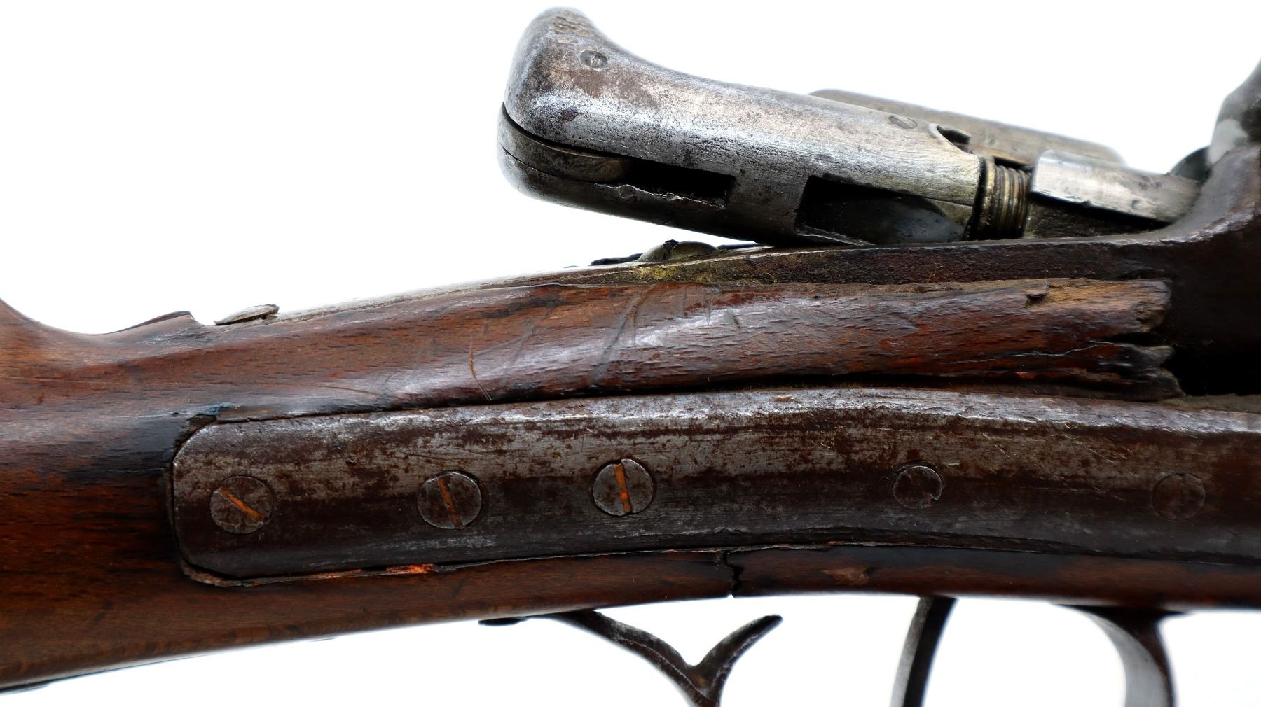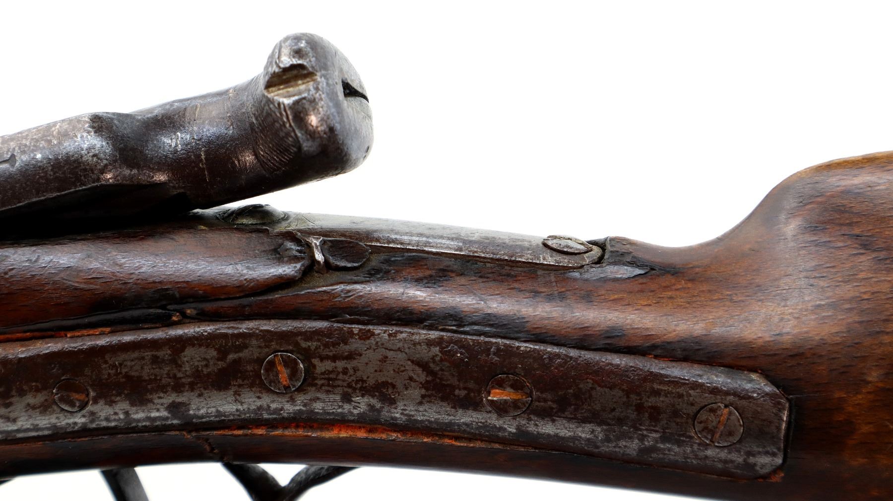 Wear: Metal finish turning brown with pitting, rust, scratches, handling marks and wear. Stock shows marks, scratches and wear.