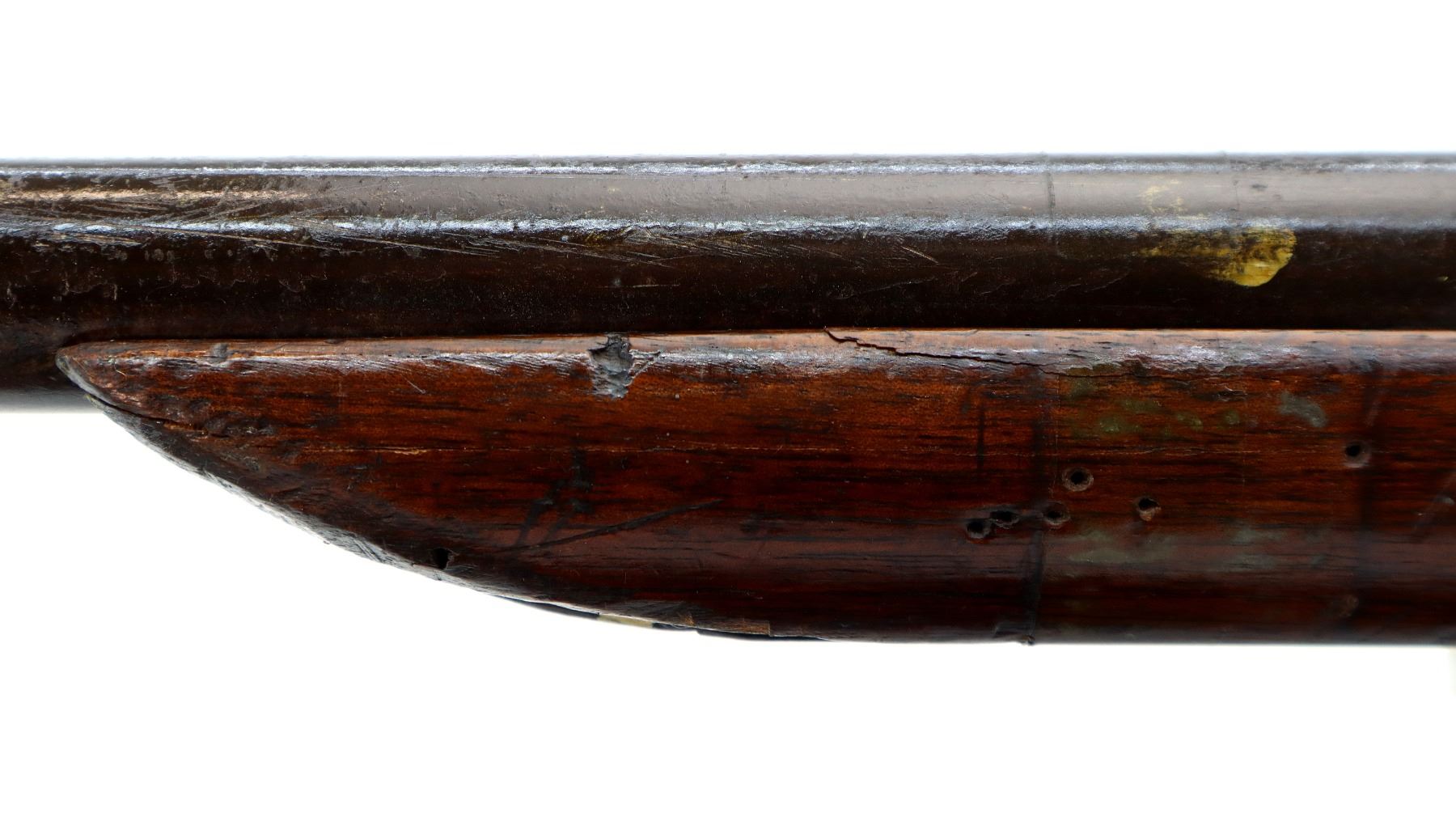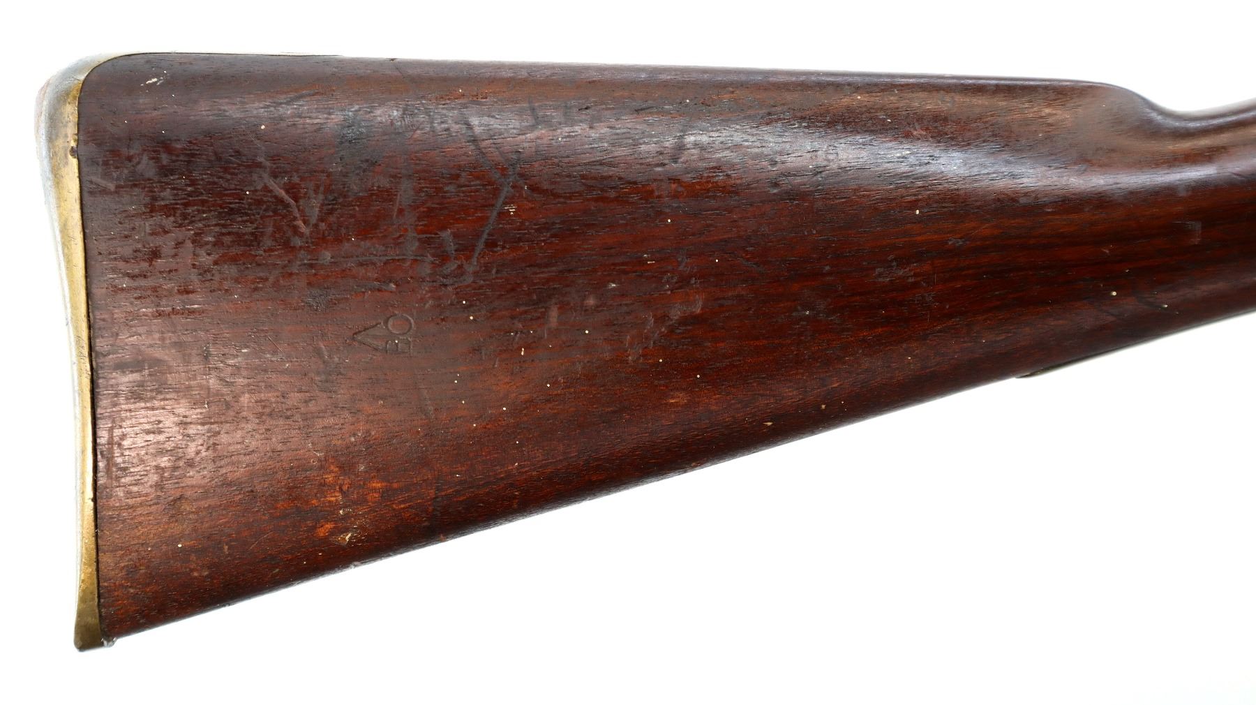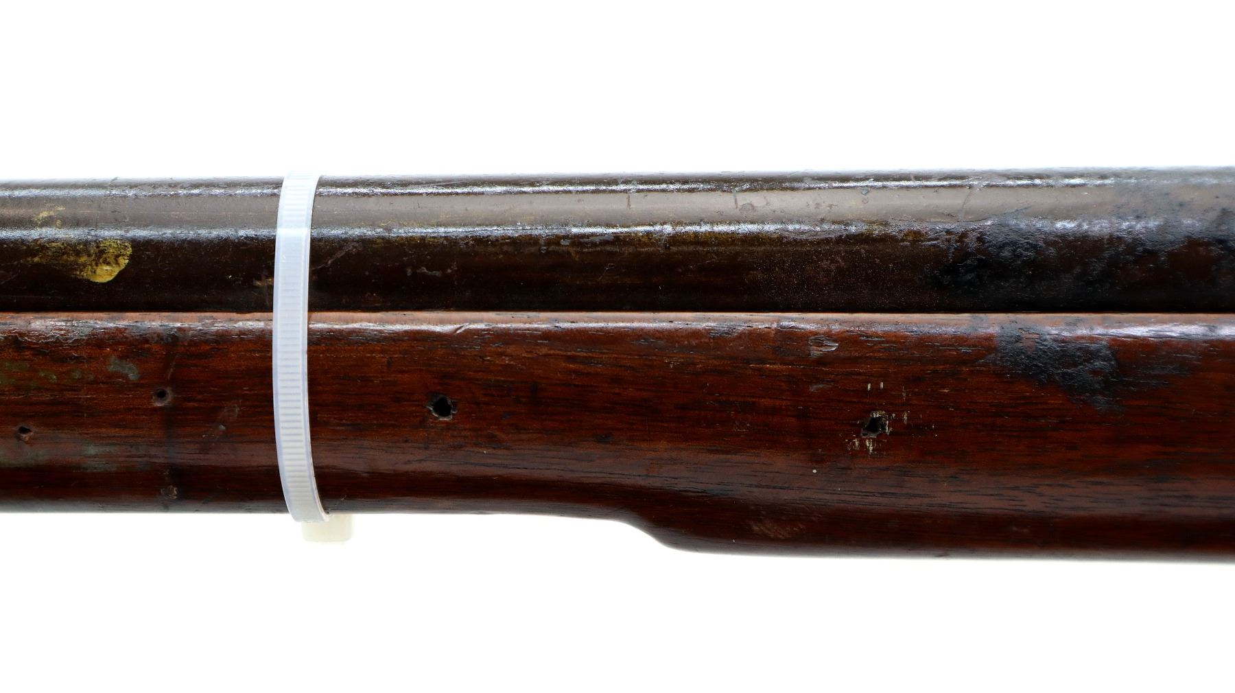 Wear: Metal finish turning brown with pitting, rust overall, scratches, handling marks and wear. Stock shows marks, scratches and wear.