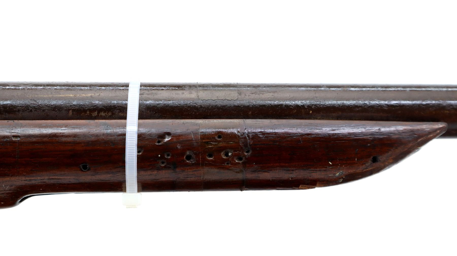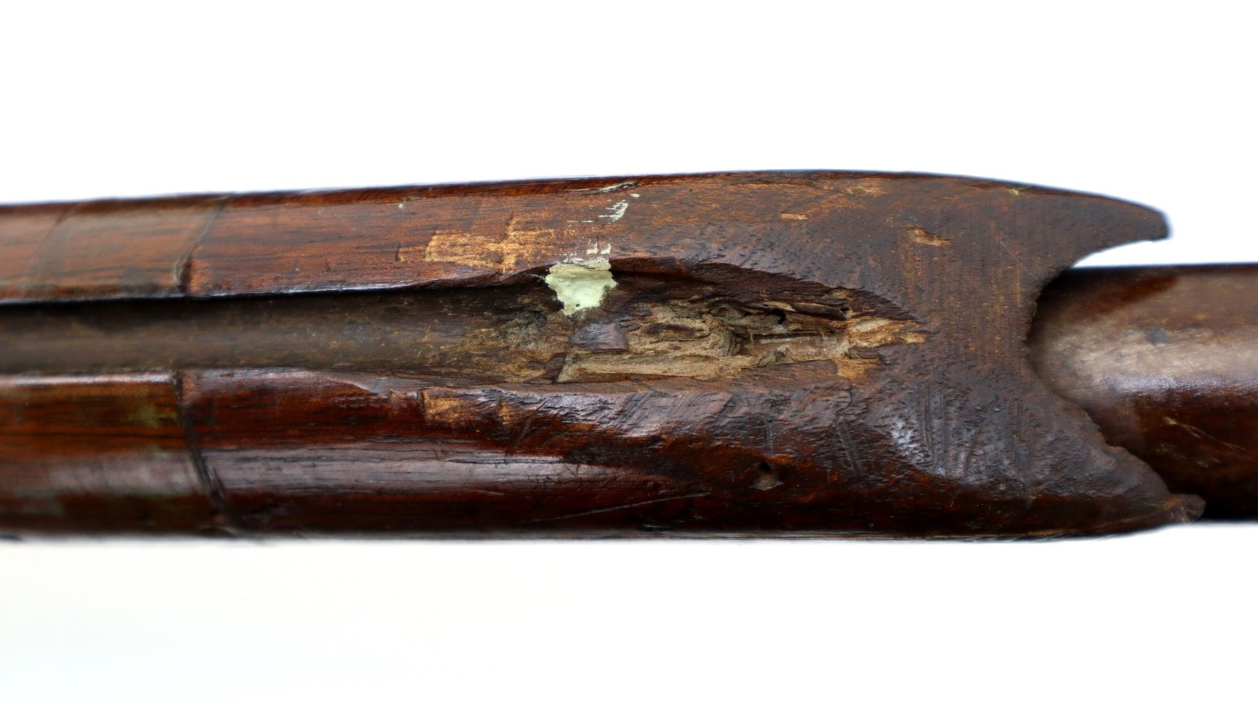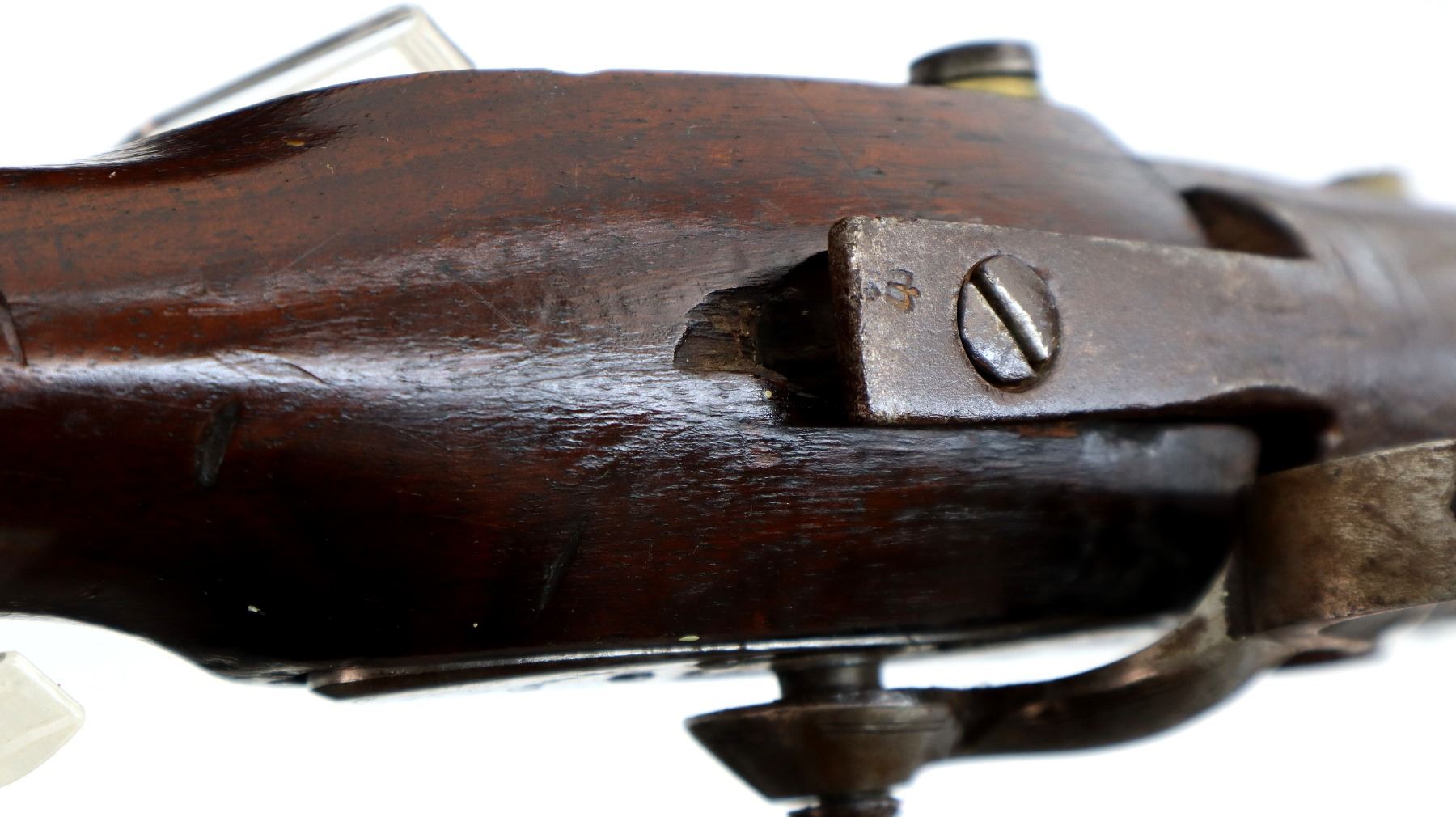 Wear: Metal finish turning brown with pitting, rust overall, scratches, handling marks and wear. Stock shows marks, scratches and wear.