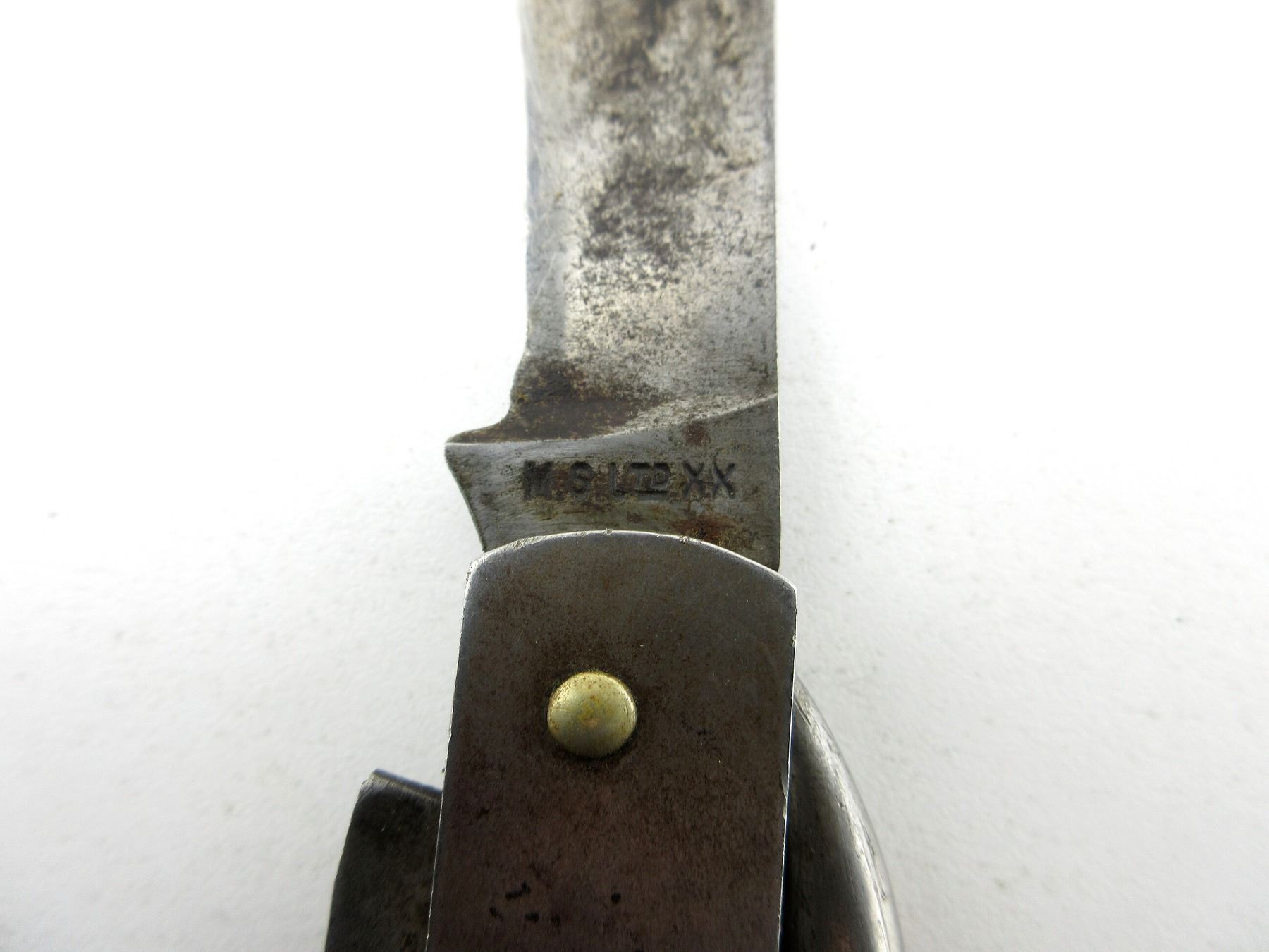 (1) MARLIN SPIKE KNIFE WITH ONE SPIKE, ONE LARGE FOLDING KNIFE BLADE, ONE SMALL FOLDING BLADE & LANYARD RING, LARGE BLADE MARKED: "M.S. LTD XX", SPIKE OAL APPROX. 4", LARGE BLADE OAL APPROX. 3.75" & SMALL BLADE OAL APPROX. 1.25". SEE PHOTOS.