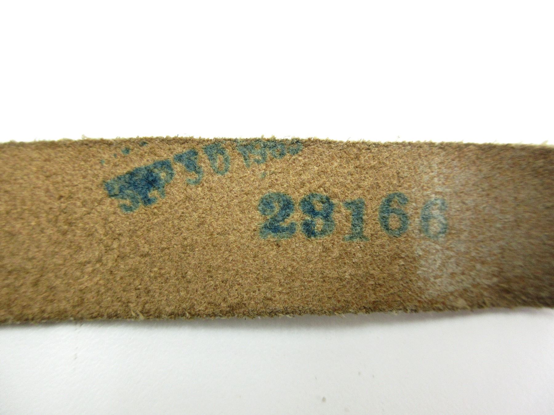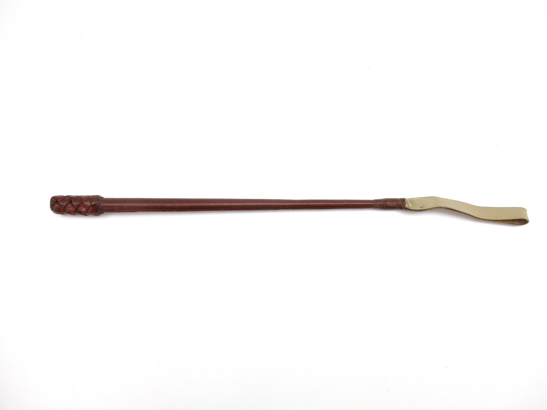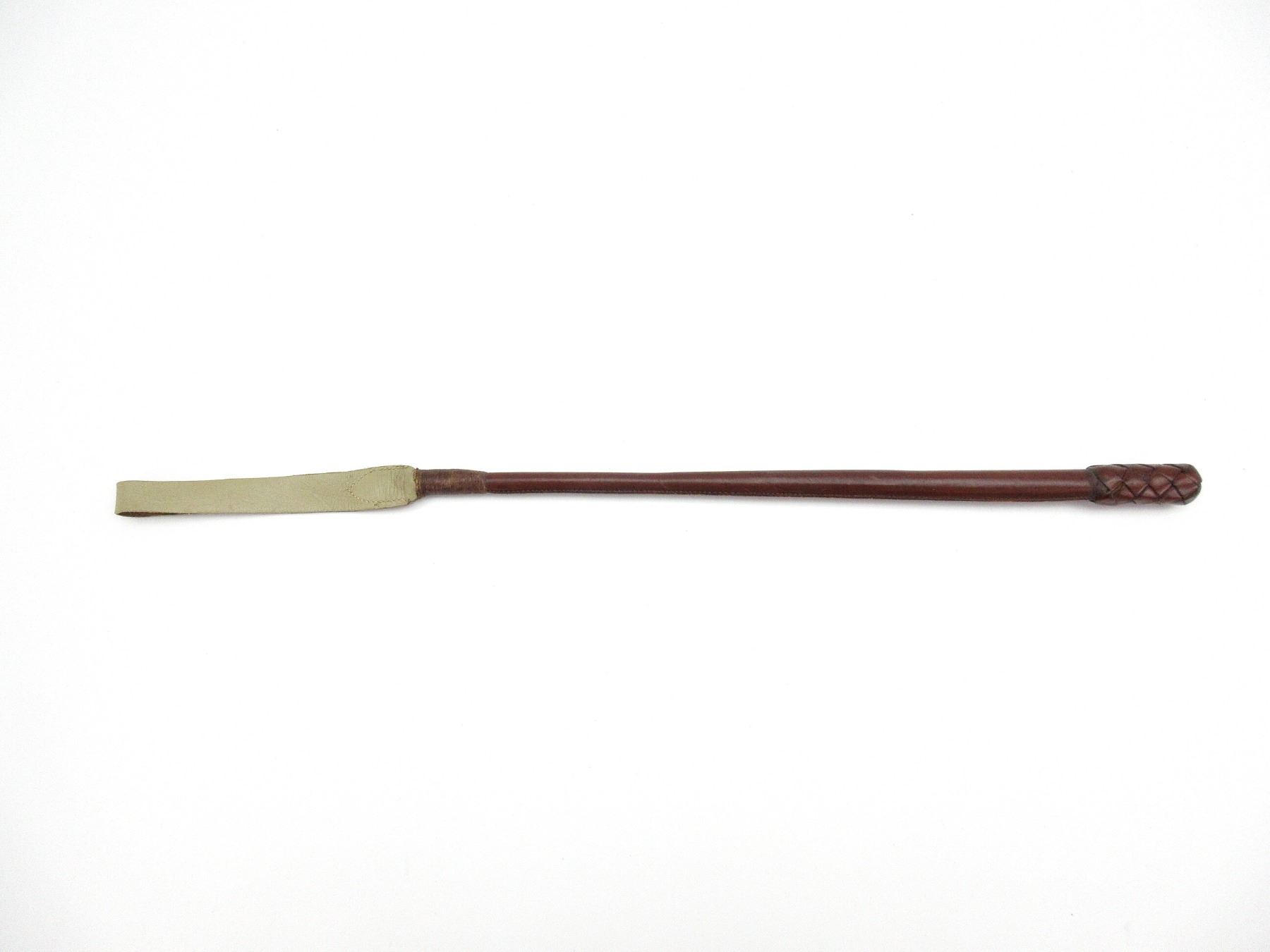 (1) BROWN LEATHER RIDING CROP, MARKED: "SEPT 30 19??, 28166", NO OTHER VISIBLE MARKINGS, OAL APPROX. 30". SEE PHOTOS.
