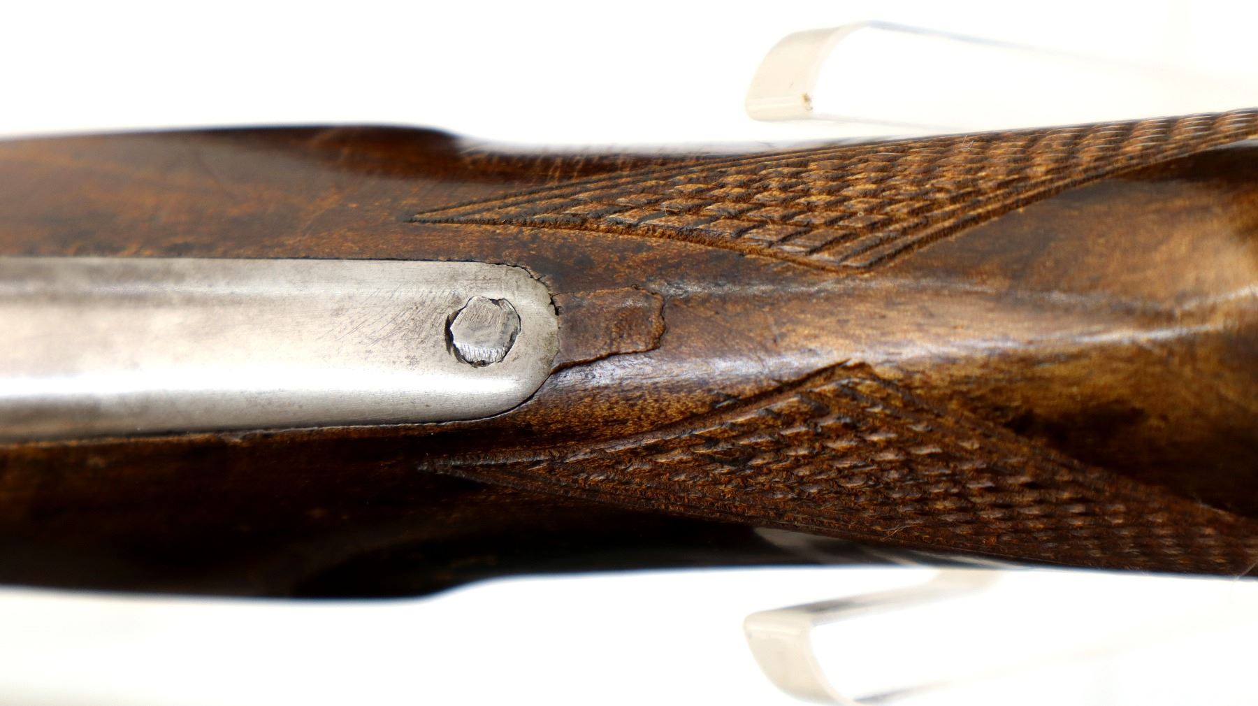 Wear: Metal finish shows some light rust speckles, scratches, handling marks and wear. Stocks show marks, scratches and wear.