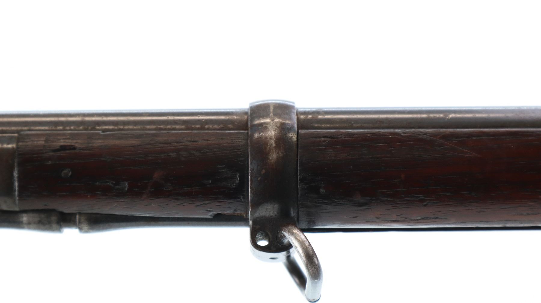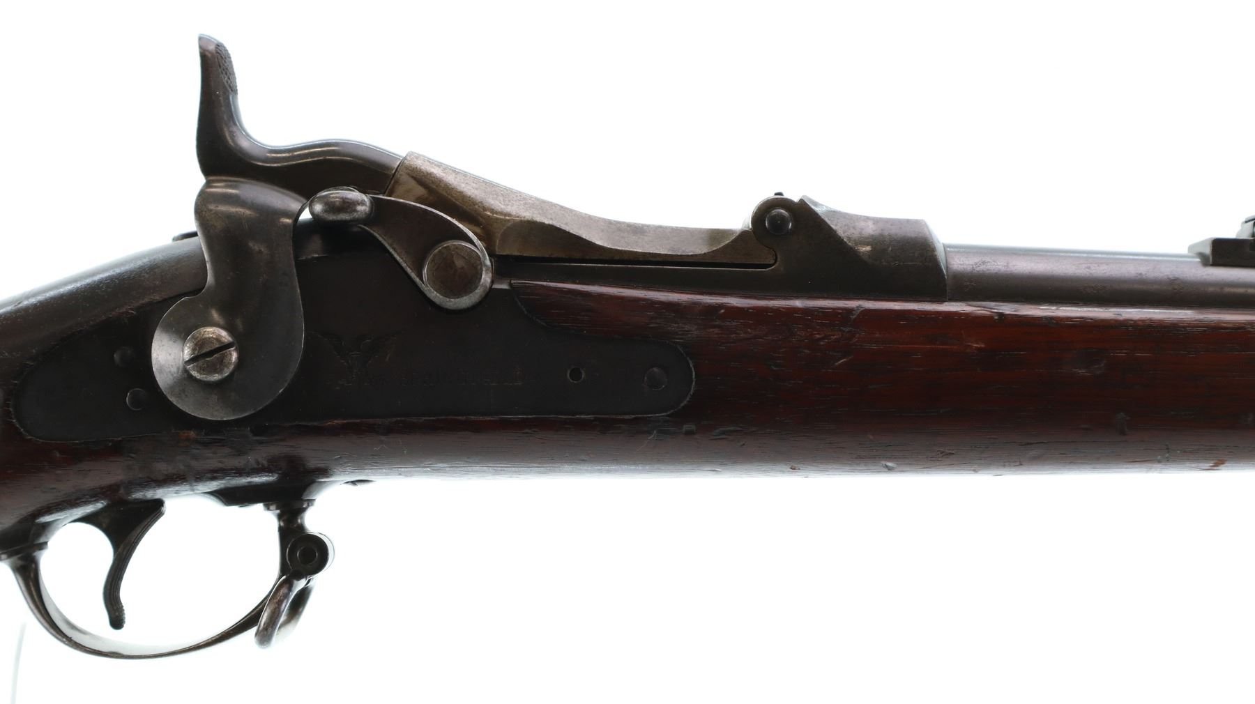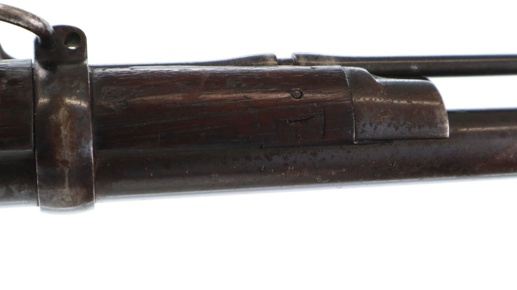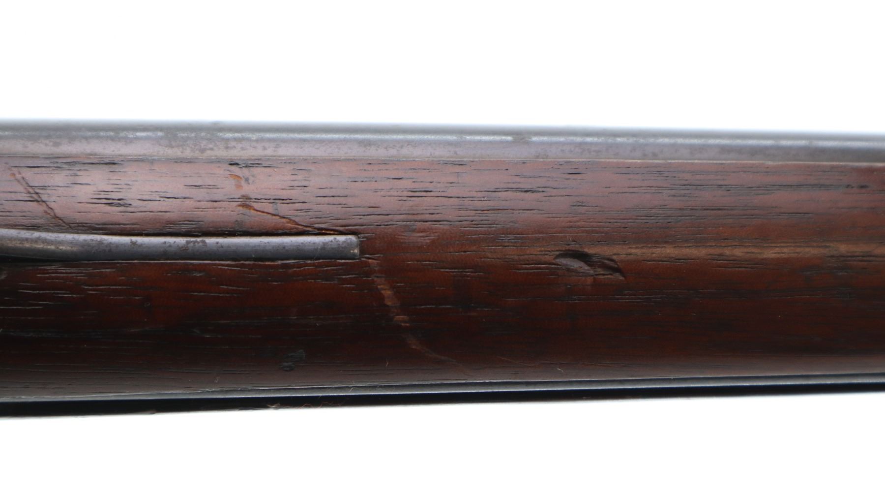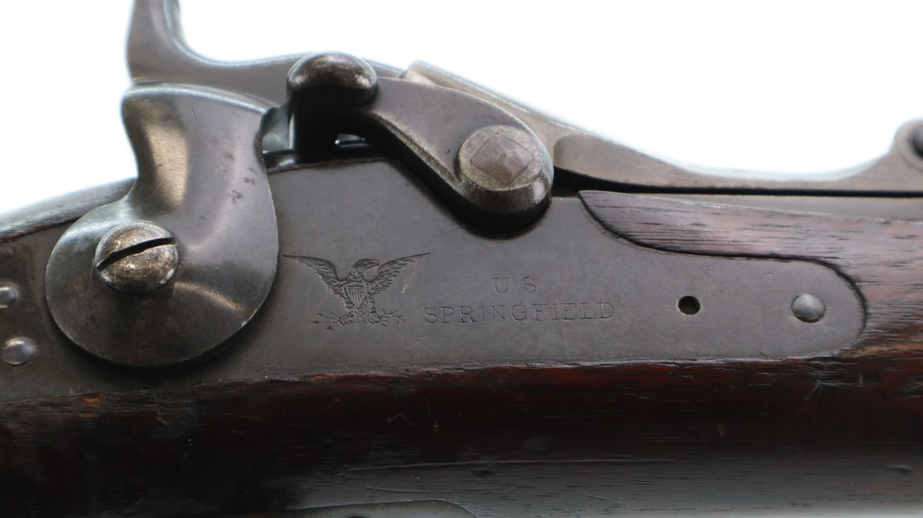 Main Description: Manufactured by Springfield. Blade front sight with ramp, adjustable u notched Buffington rear ladder sight which is bent, blued finish, checkered spur hammer that functions. One piece smooth full military wood stock, forearm tip is cracked, straight grip, smooth steel butt plate, sling swivels, cleaning rod.